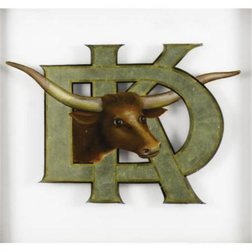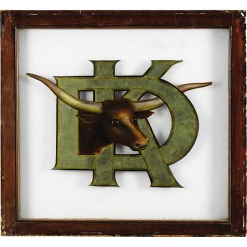 <B>Fort Worth Livestock Exchange Building Window Circa Early 20th Century.</B></I><BR><BR> Original window frame, 29" x 17.5", with glass pane adorned with the Daggett Keen Commission Company logo featuring a longhorn. Medium is oil paint and gold leaf on glass. In near fine condition with only minor losses. An identical window sold for more than $5000 in a Heritage Early Texas Art auction earlier this year.<BR>The Daggett Keen Commission Company was a livestock brokerage company with roots back to Fort Worth's earliest days.<BR><BR><b>Shipping:</b> Miscellaneous Collectibles, Larg (<a target="_blank" href="http://www.heritageauctions.com/common/shipping.php">view shipping information</a>)