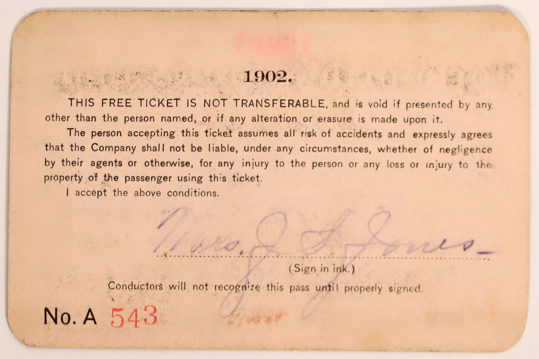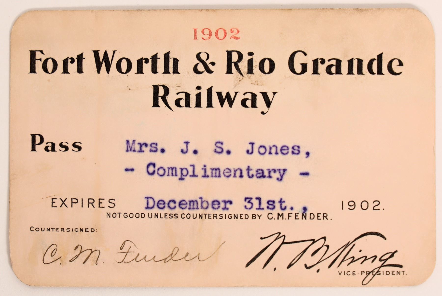 1902 Fort Worth & Rio Grande Railway pass with printed signature of N B illegible vp.