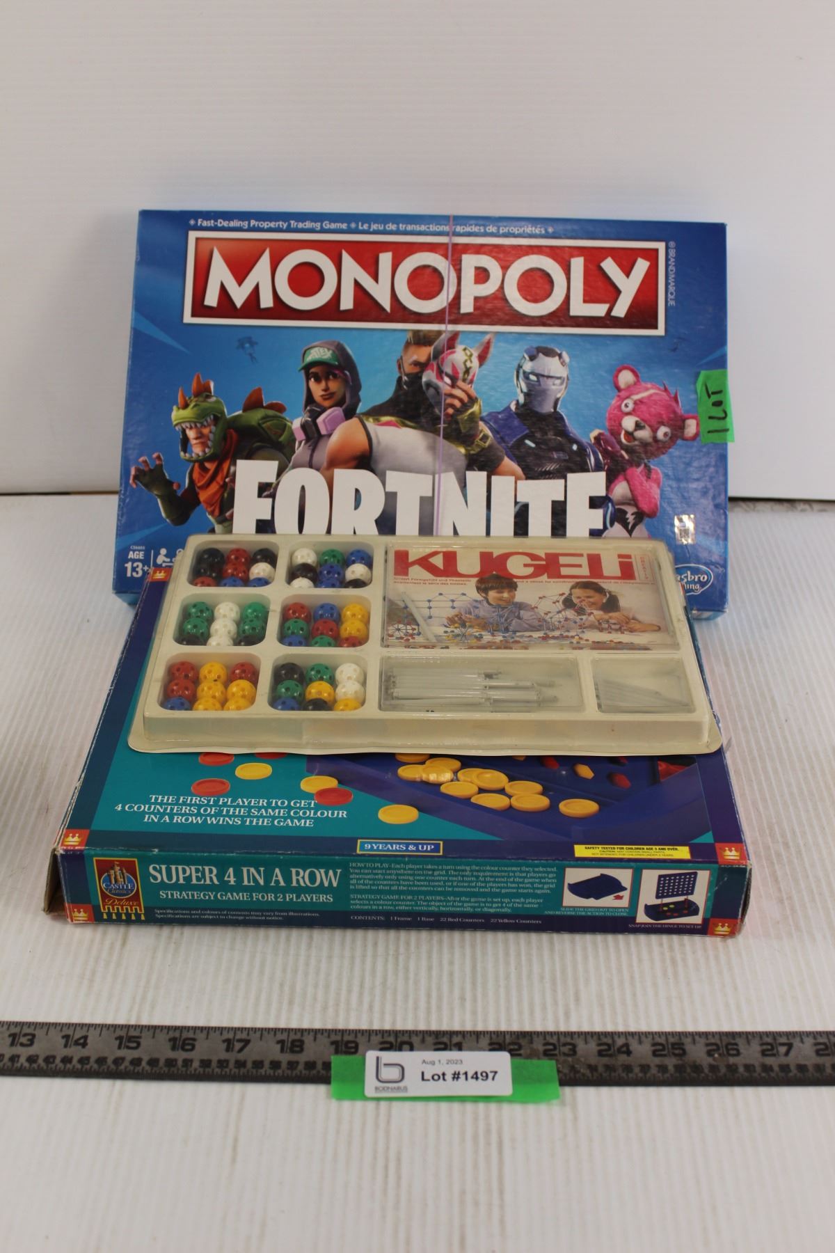 Fortnite Monopoly, Super 4 in a Row, Kugelin Building Toy