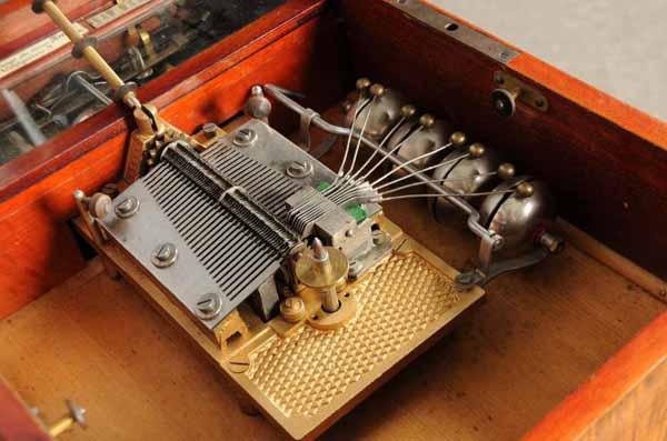 Description Includes eight bells and base, 15 discs and double comb. One repaired tooth. working. Condition (Excellent). Size 11".