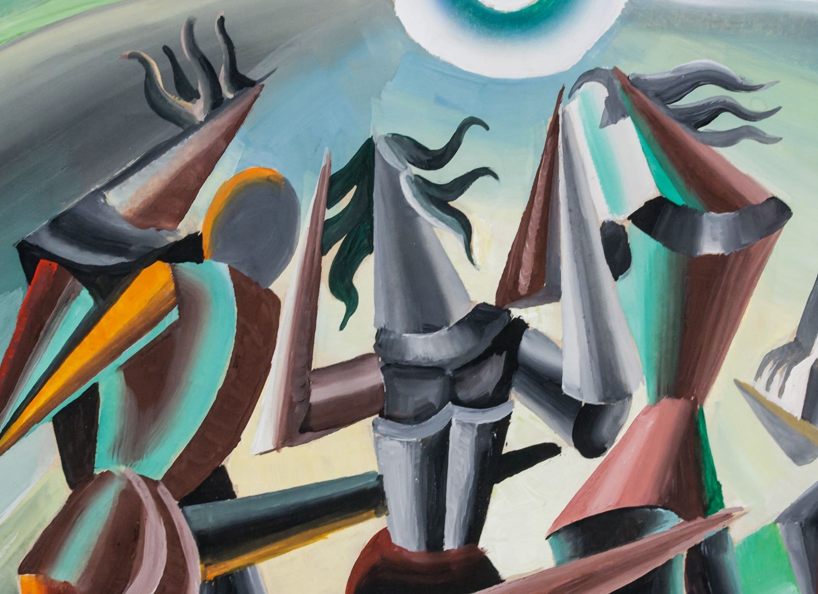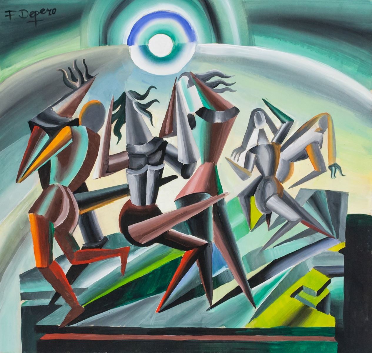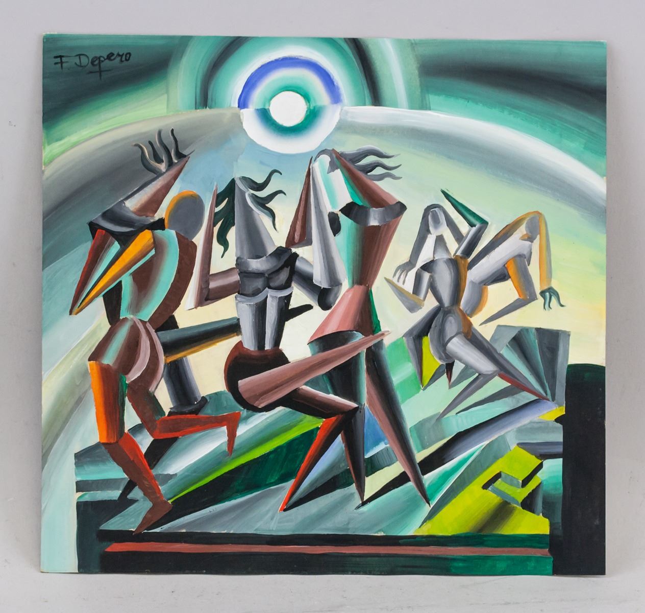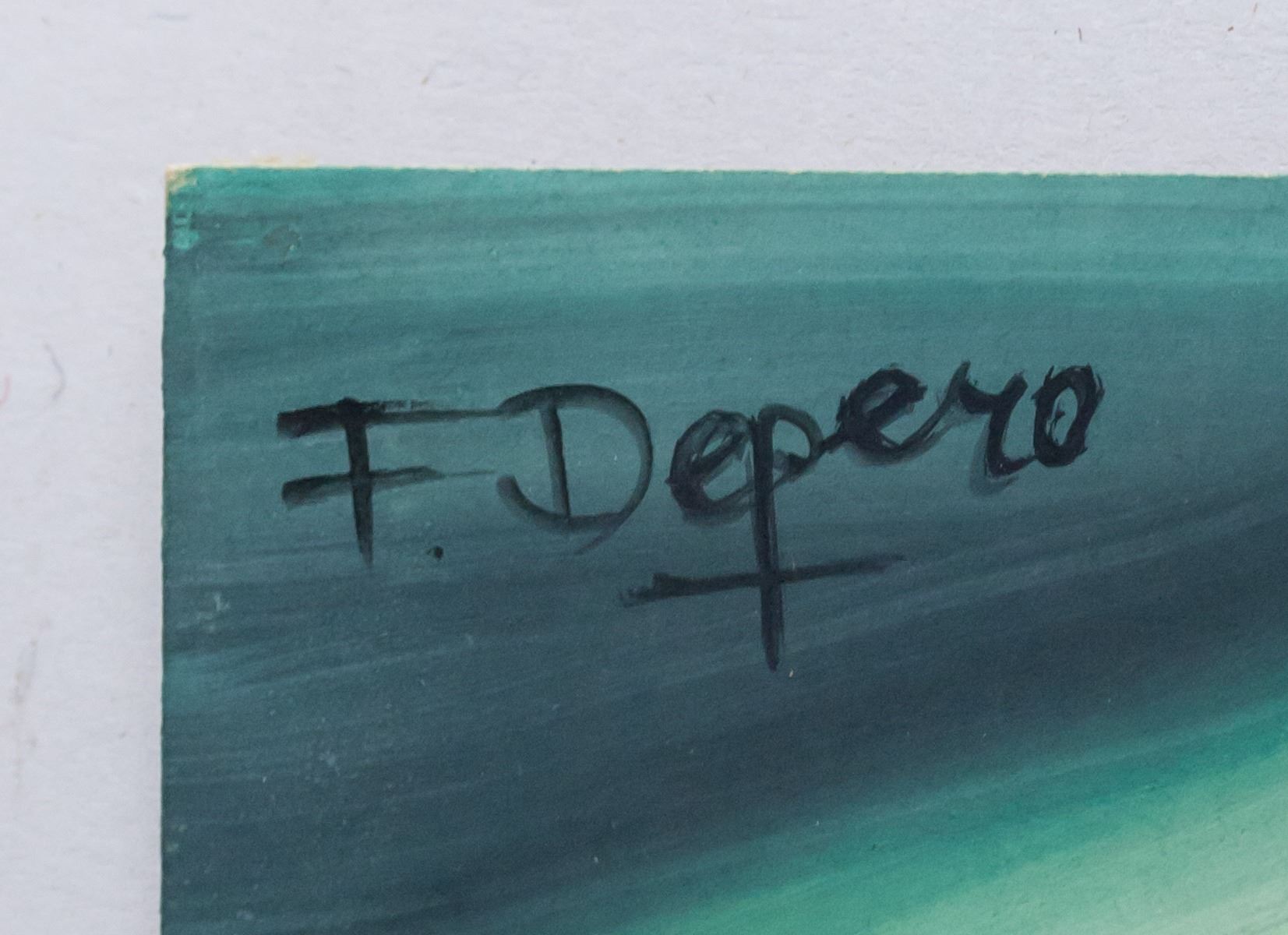 Tempera on paper. Featuring an abstract portrait composition. Signed F Depero on the upper left corner. Attributed to Fortunato Depero (1892-1960, Italian). 20 x 21 cm (7.75 x 8 in). PROVENANCE: Southern Ontario estate