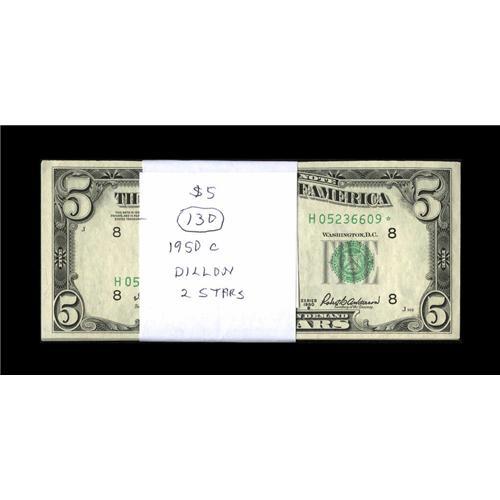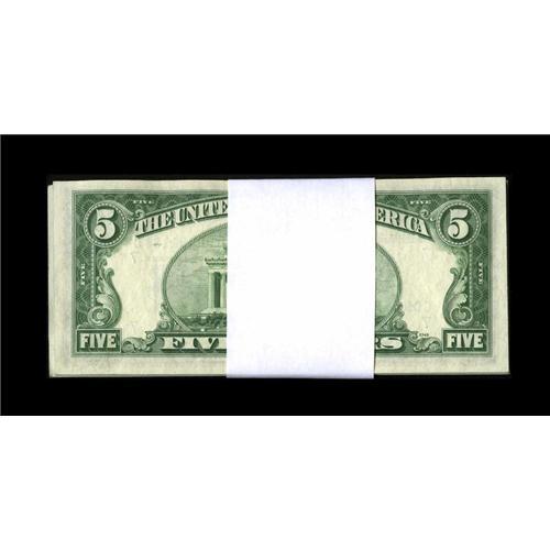<B>Forty One Fr. 1962-G $5 1950A Federal Reserve Notes. Choice Crisp Uncirculated to Gem Crisp Uncirculated.</B></I><BR>This pack includes two consecutive runs of 20 each and a lone note. The two 20 note runs are wrapped in a strap labeled $100 and are either from the First Wisconsin National Bank of Milwaukee or Marine National Exchange Bank of Milwaukee. The teller stamp on the later pack's strap is dated Nov. 11, 1960.<BR><BR><b>Shipping:</b> Coins & Currency (<a target="_blank" href="http://www.heritageauctions.com/common/shipping.php">view shipping information</a>)