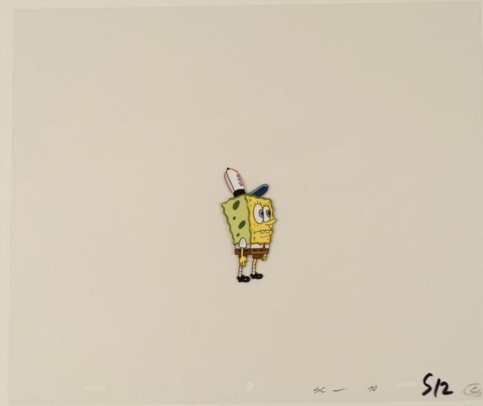 This original animation cel is from the Nickelodeon TV show SpongeBob Squarepants. The story takes place under the deep blue sea in Bikini Bottom, where SpongeBob resides. SpongeBob, who is a yellow, porous sponge, is your typical happy-go-lucky character, as he is always cheerful and enjoys making people laugh. Patrick Star, SpongeBob's neighbor who is a starfish, is your average children's show idiot, as he boasts knowing nothing and is often getting himself into ridiculous situations. Between the homes of these two lies the home of the miserable Squidward, a squid, who is known for being grouchy and playing tricks on SpongeBob and Patrick. Both SpongeBob and Squidward work at the Krusty Krab, a fast food business run by the greedy money-loving Mr. Krabs, a crab, the arch rival of the evil, possibly misunderstood, Plankton. Another neighbor, Sandy Cheeks, an athletic squirrel who normally wears an astronaut's space suit, was introduced in "Tea at the Treedome." She spends most of her time inventing and experimenting. SpongeBob it looking forward.Original Production Animated Cel Overall Size of Cel: 10 1/2" x 12 1/2" Very Good ConditionThis is an original hand-painted cel set-up used in the production of an episode of "SpongeBob SquarePants." Each one-of-a-kind set-up represents a slight change in position of the characters. When individually photographed and projected in rapid succession, the images appear to move.