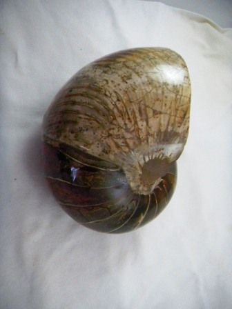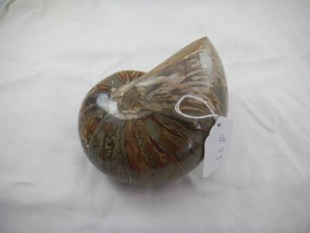 Eight inch polished ammonite fossil from Africa. Finely polished. Measuring 8 by 5 inch. Shipping $20.00