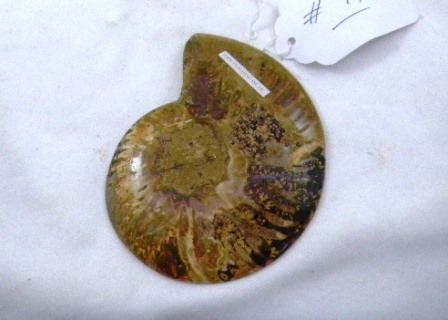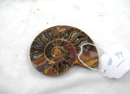 Ammonite half fossil. It measures approximately 4 by 4 inches. Condition is polished and very good. Shipping $14.50