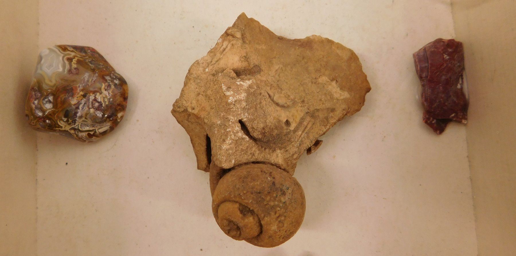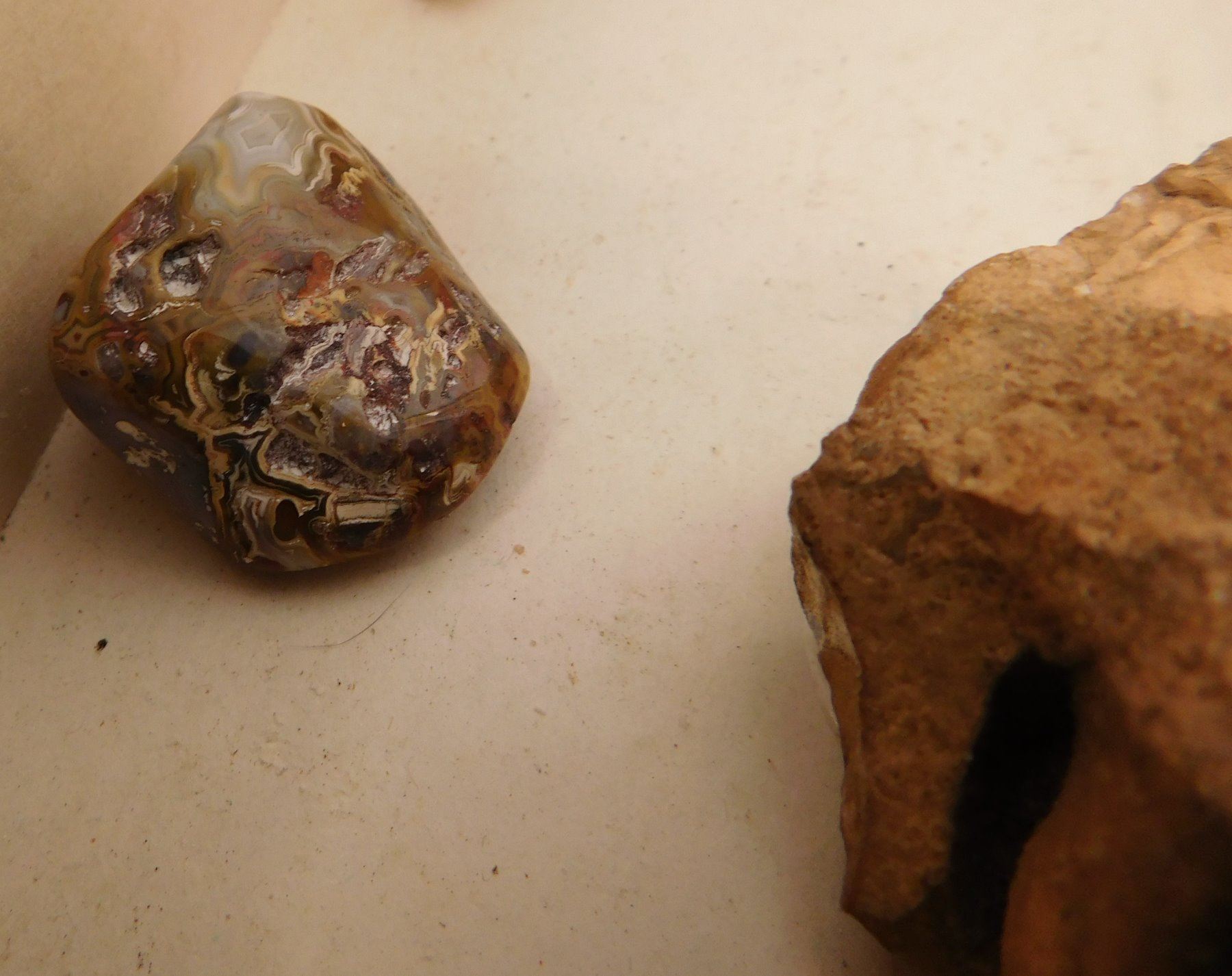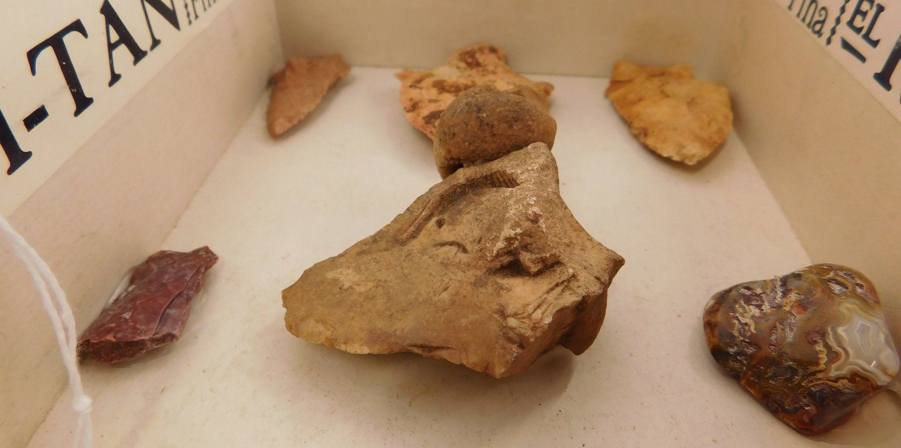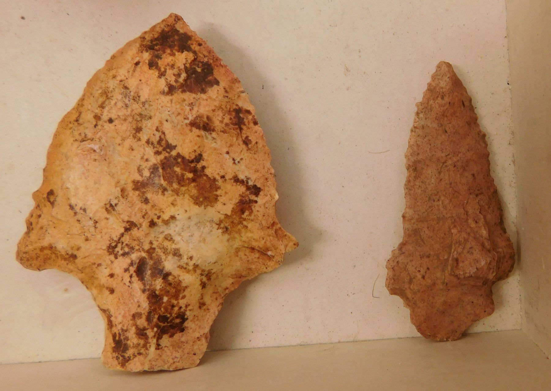 Fossil & Artifact Collection, artifacts c. 5000 years old. Made of chert and sandstone, the items measure from 1" to 2.5". Terrell County, Georgia. Box included. Condition: As found, see images. Shipping: $20.00 w/insurance and signature.