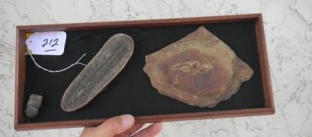 Fossil Collection, Fish fossil 4 inches, Fern Fossil 6 inches, and concreation 1 1/2 inches. Also included is a Book, The Audubon Society Field Guide to North American Fossils dated 1982. Shipping $20.00