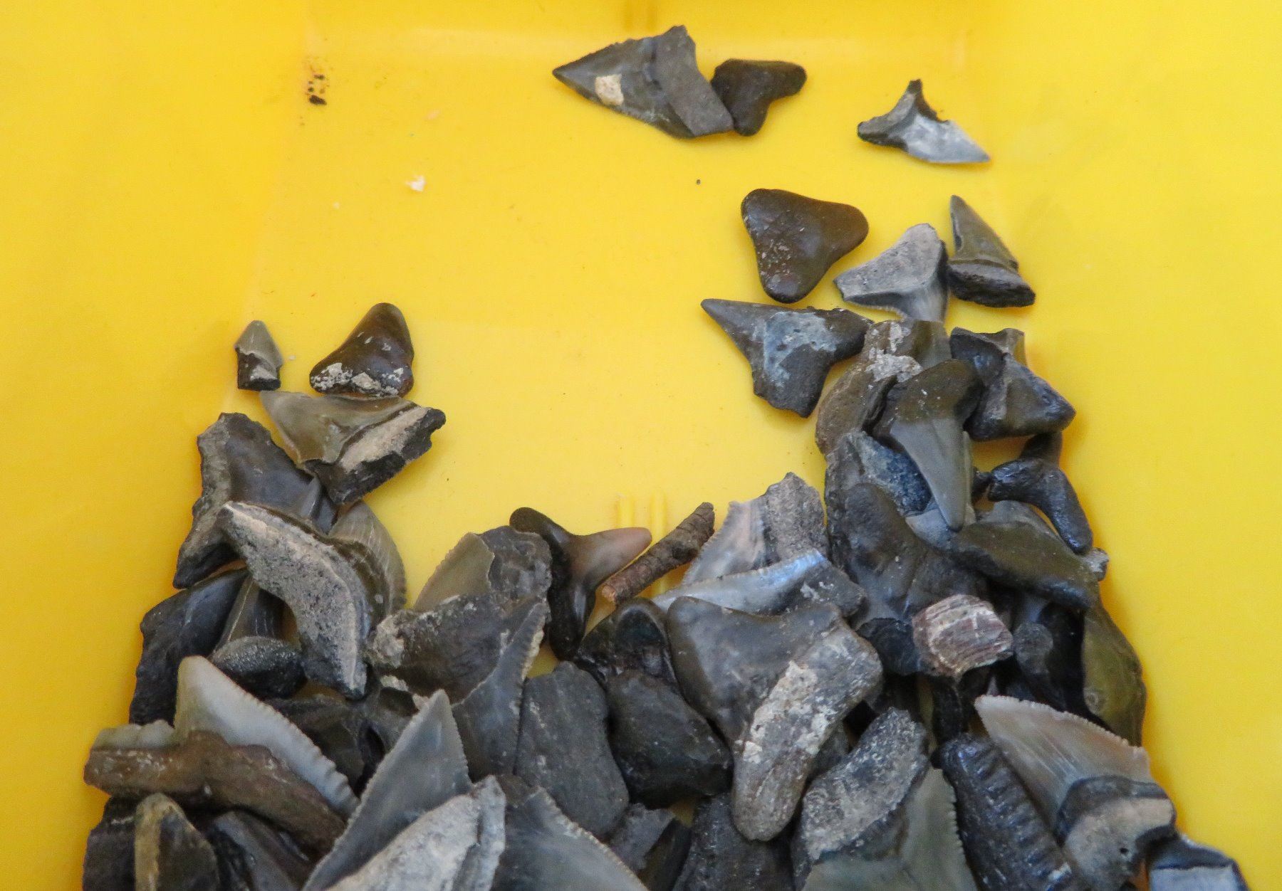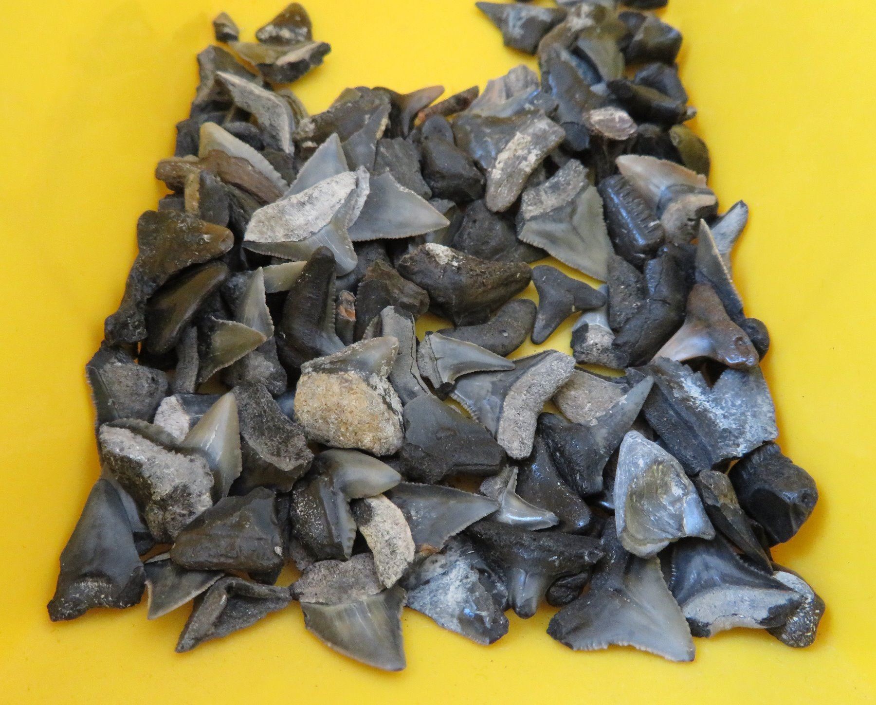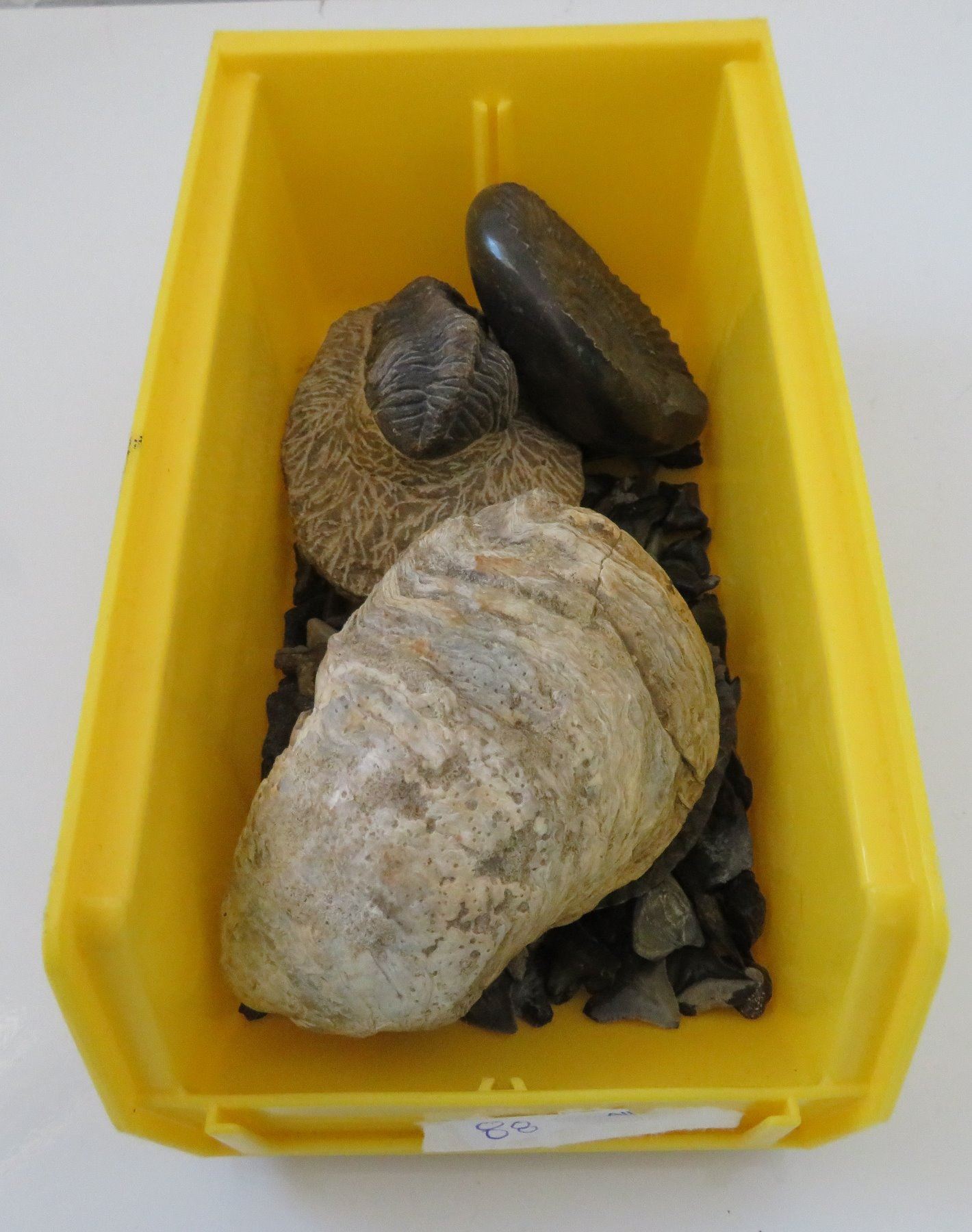 Fossil Collection, pre-historic items. Made of fossilized oceanic material, the largest measures 4" x 2 1/2", smallest 1/2" x 2". Coastal United States. 100 sharks teeth, ammonite, trilobite, excellent fossil examples. Condition: Excellent, see images. Shipping: $24.50 w/insurance and signature.