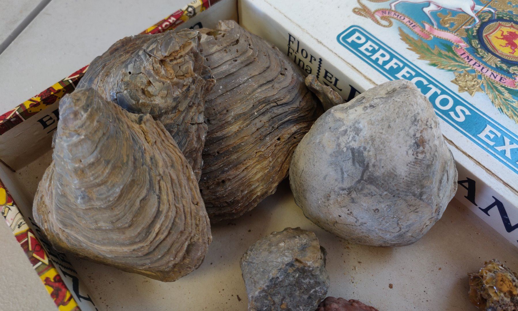 Fossil Collection, pre-historic items. Made of shell, coral and stone, the largest measures 4 1/2" long. Baja California, Mexico. Condition: As found, see images. Shipping: $20.00 w/insurance and signature, due to value and weight.
