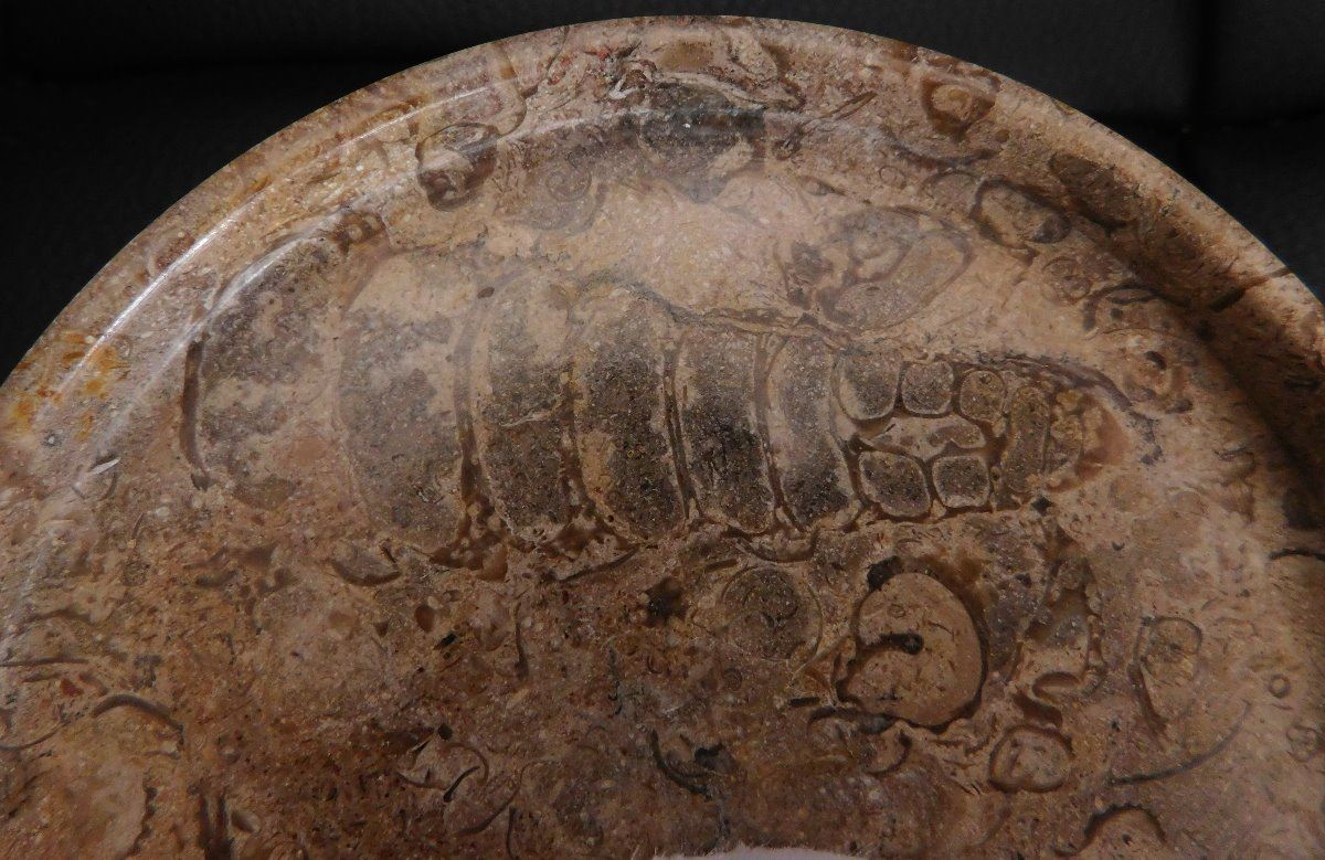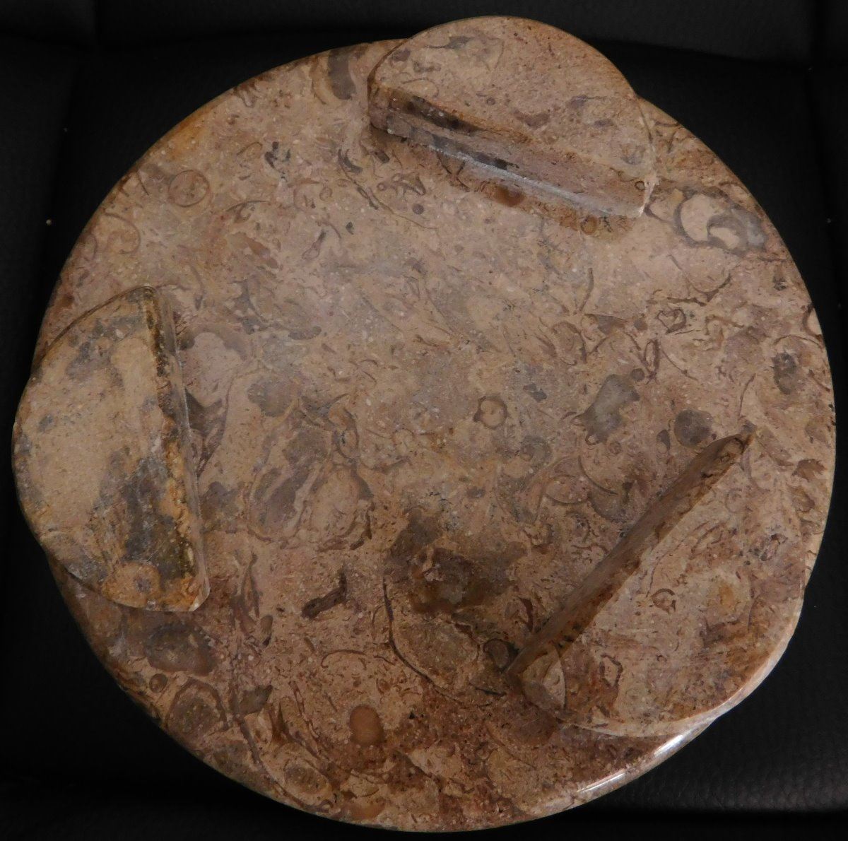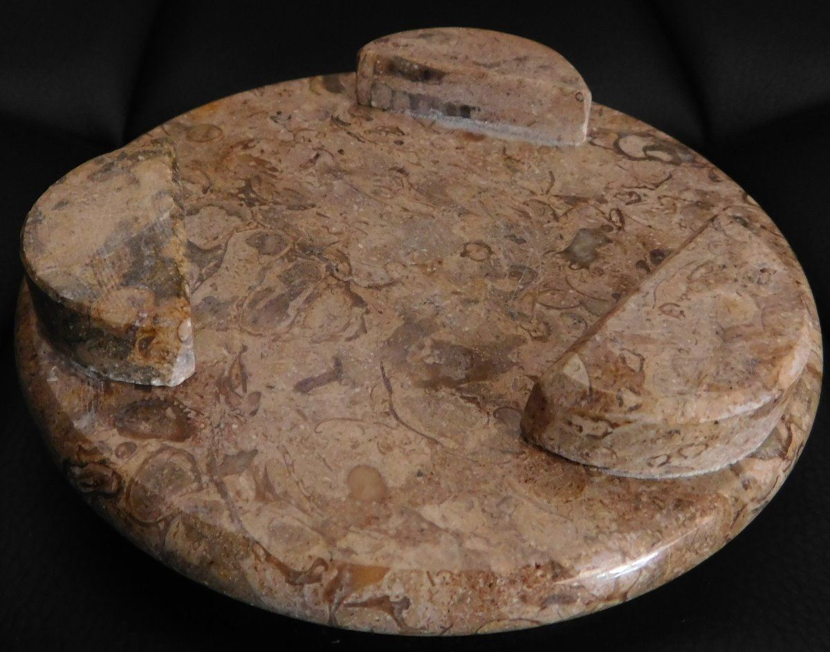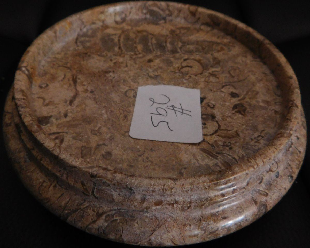 Fossil Display Stand, modern item. Made from fossil rock marble, the item is 5" x 1.5". From Pakistan. Many fossils visible in the stone. Condition: Good, see images. Shipping: $15.50 w/insurance and signature.