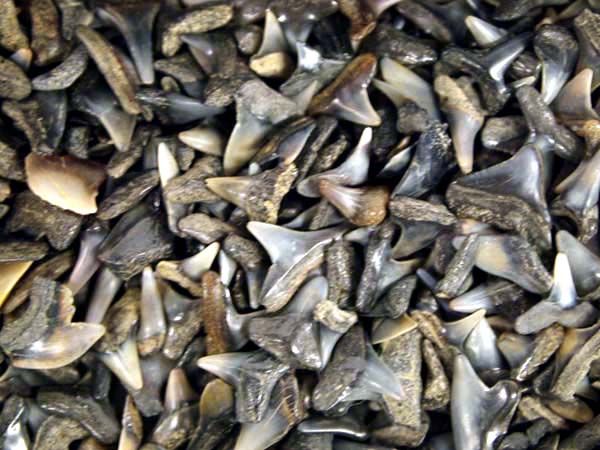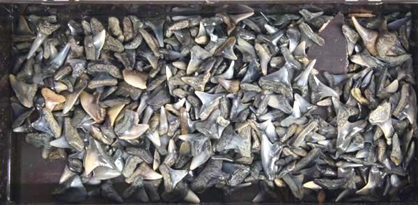 Fossil Shark's Teeth, Large Lot of Small to Medium Size.