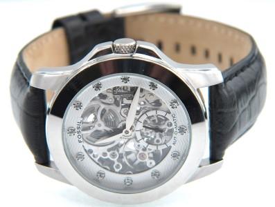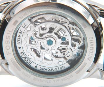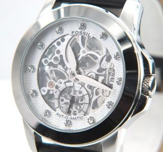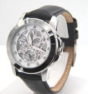 Fossil Automatic Stainless Steel Skeleton Leather Strap Watch.The total watch's weight is 66.8 grams.The measurements of watch head is 37 x 37 mm and 11 mm thick.The length of watch: 10".water Resistant