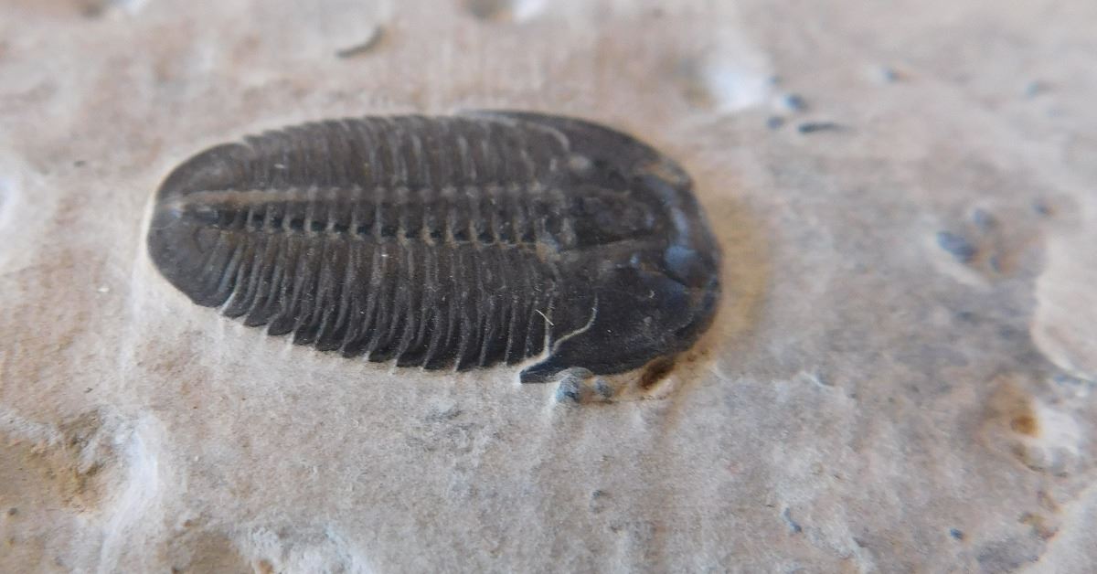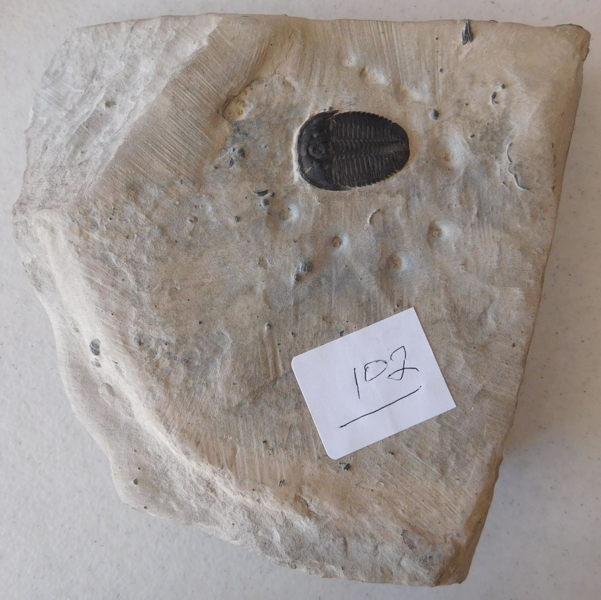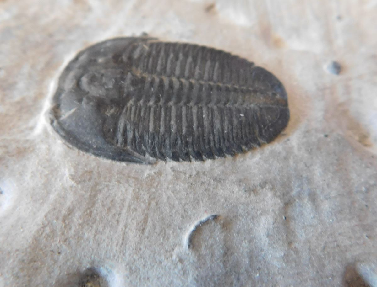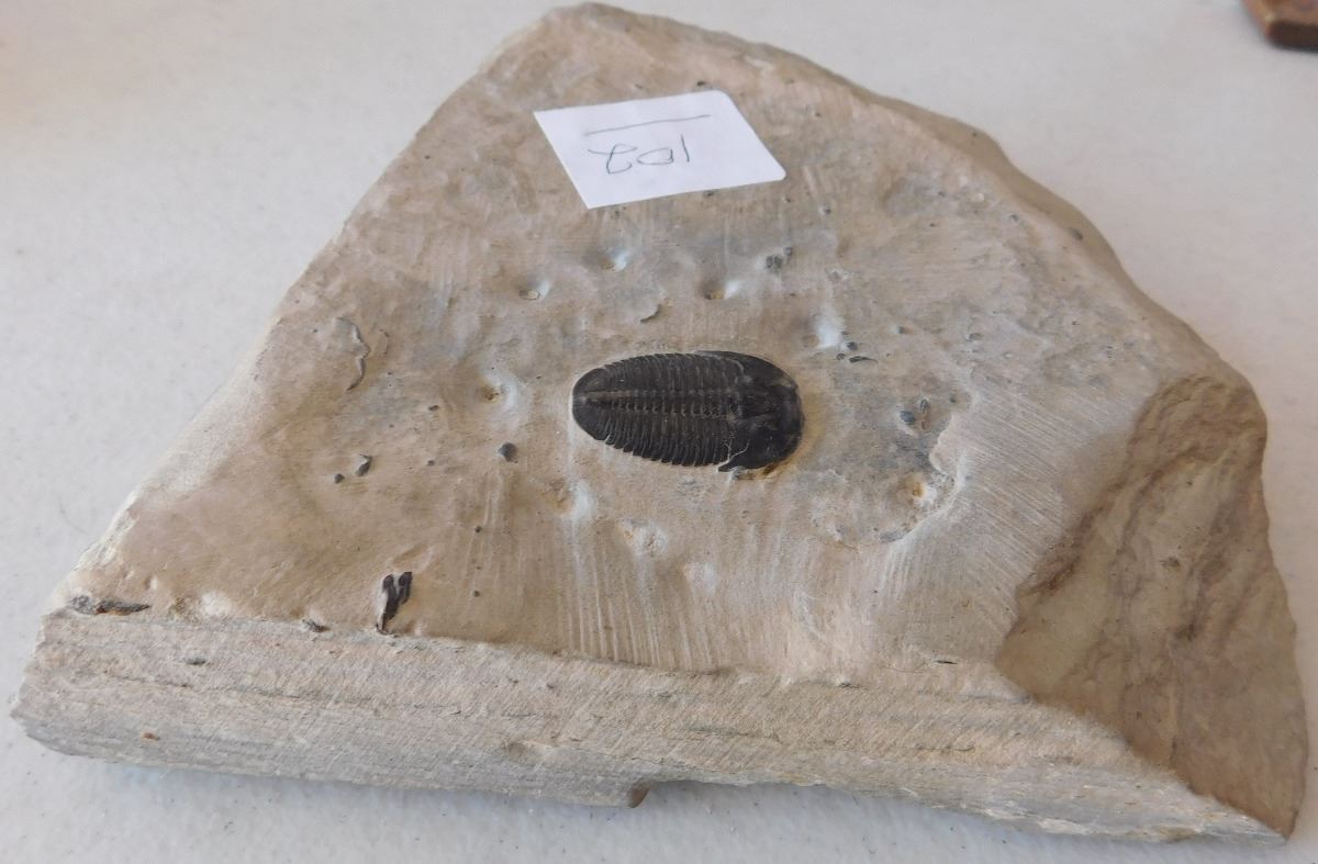Fossil Trilobite, many million years old. Made of slate, this item measures 7" x 6" x 1". Found in Ohio. Fossil is visible through stone. Condition: Good, see images. Shipping: $18.50.