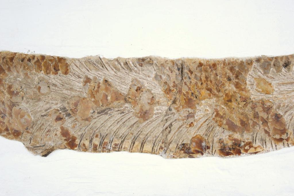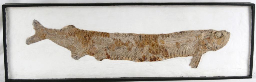 Fossil "Xiphactinus" Sword Ray bony fish 34" long 100 million year old fossil. was a large, long predatory bony fish that lived in the Western Interior Sea, over what is now the middle of North America, during the Late Cretaceous. Skeletal remains of X