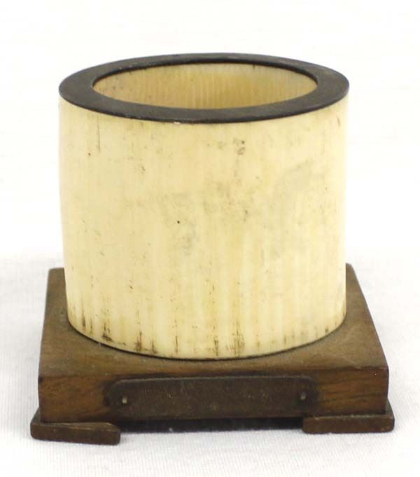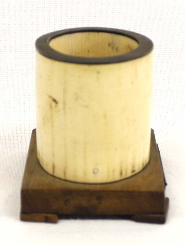 Fossilized Bone Toothpick Holder, on wood base, measures 2.5'' x 2.5''