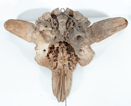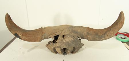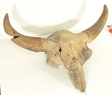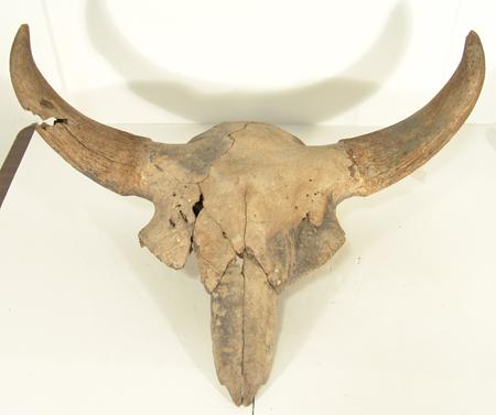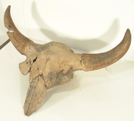 Rare excavated fossilized skull with horns intact. Still in good condition, some small missing sections. 31" wide x 30" long