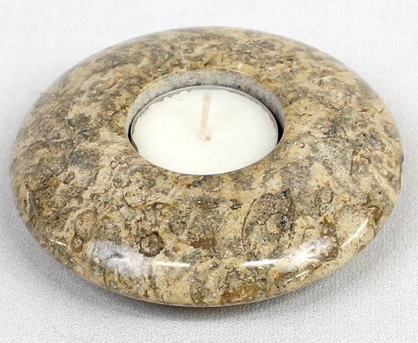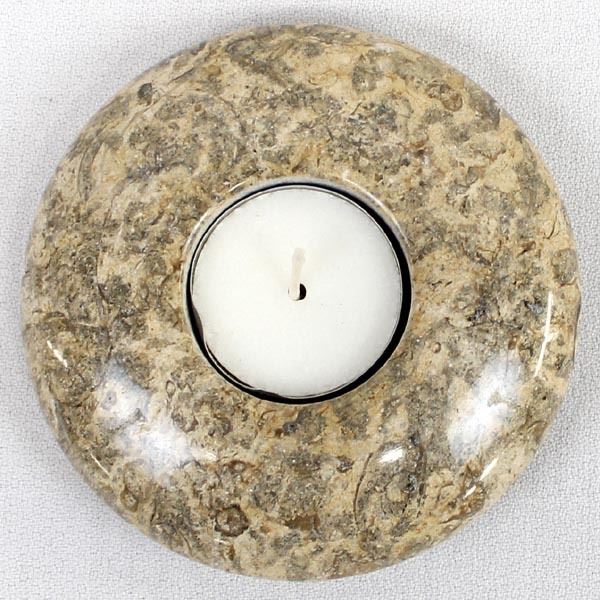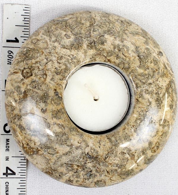 Fossilized Coral and Marine Candle Disk Holder, measures 1''H x 4''D