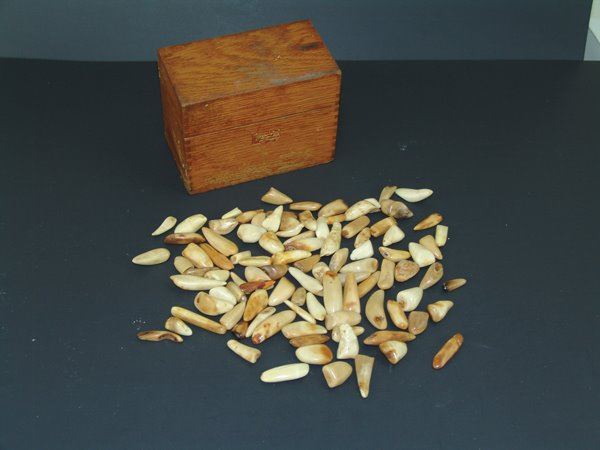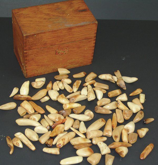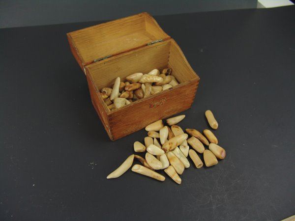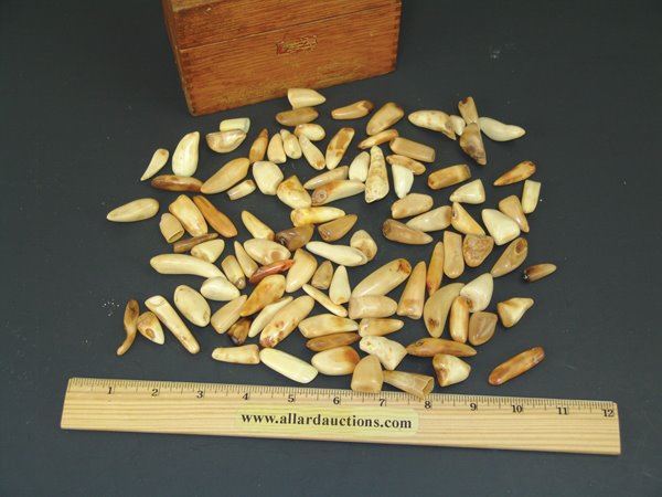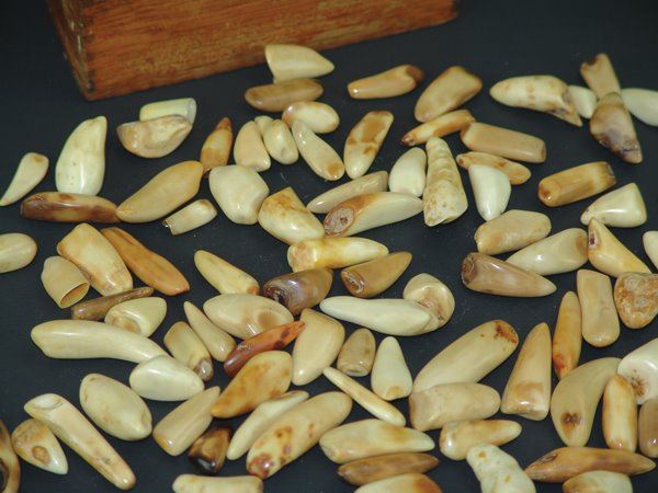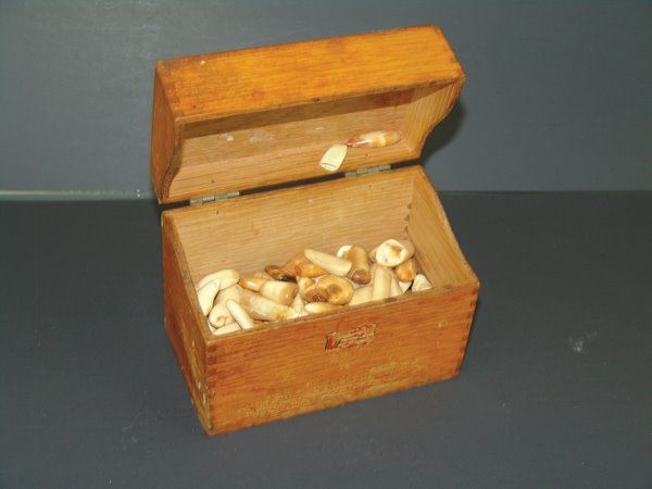 Prehistoric Up to 2" Huge assortment of soft-polished, fossilized ivory pieces including teeth, etc. Good condition, in an old file box.