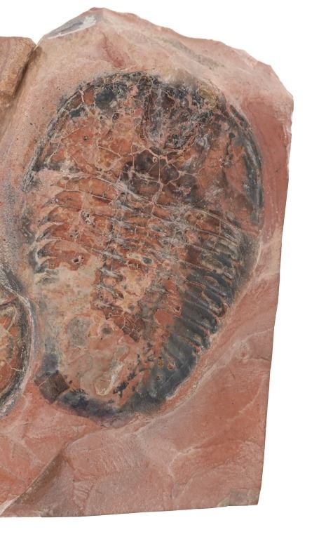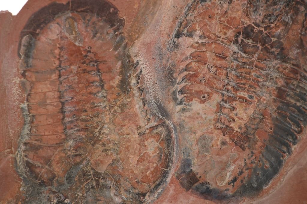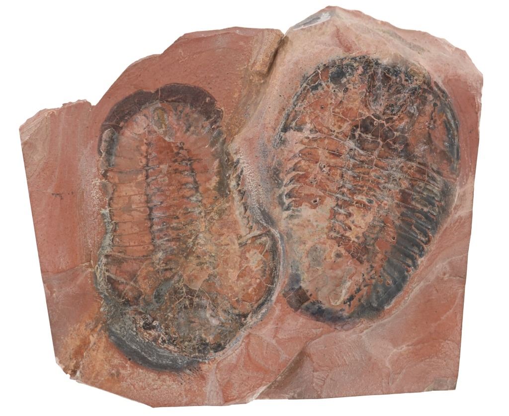 Featured in this lot are two fossilized Trilobites in stone, found in Morocco from the Permian age (299-251 million years ago). The Permian is a geologic period and stratigraphic system which spans 47 million years from the end of the Carboniferous Period 298.9 million years ago, to the beginning of the Triassic Period, 251.9 million years ago. It is the last period of the Paleozoic Era. The Trilobites have been fossilized in a flat state, showing smooth surfaces on the fossils. The trilobites show good detail, despite being embedded in the rock, showing all three lobes: a left pleural lobe, a middle axial lobe, and a right pleural lobe. The piece shows good condition overall with the Trilobite showing no obvious damage. The fossils measure 4" in length and 2 3/4" in width. The rock they are embedded in measures 5 3/8" L x 6 5/8" W x 1 1/8" D. It weighs 1 pound and 12 ounces.