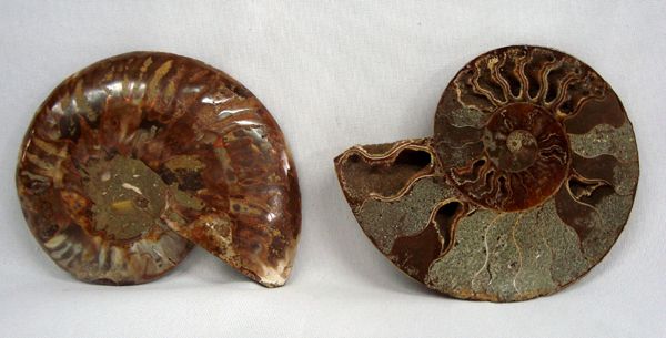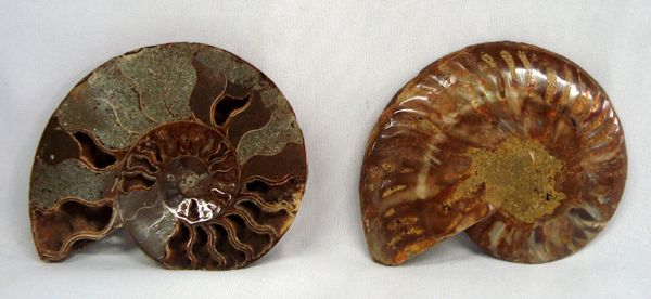 Fossilized Sliced Tiger Nautilus Shell. Beautiful shell, inside and out. Sliced perfectly through the middle. Measures 5'' x 4'' x 1.25''. Imagine holding in your hand a 110 million year old fossil. Some ammonites are much older that that, up to 450 million years old. Even older than the dinosaurs. Oceans at the time were teeming with life. Predators were everywhere, and it was a live fast, or die hard world for the ammonites. In fact, ammonites closely resemble modern squids, octopus and the chambered nautilus. Ammonites were carnivores as well. Fossils were once found only in museums - NOW you can OWN one!!! This is from a NEW batch from Madagascar. Bought in Tucson with some of the best color and deepest cavities/pockets around, excellent batch!!!! Super nice crystals, absolutely the best I have seen in years.