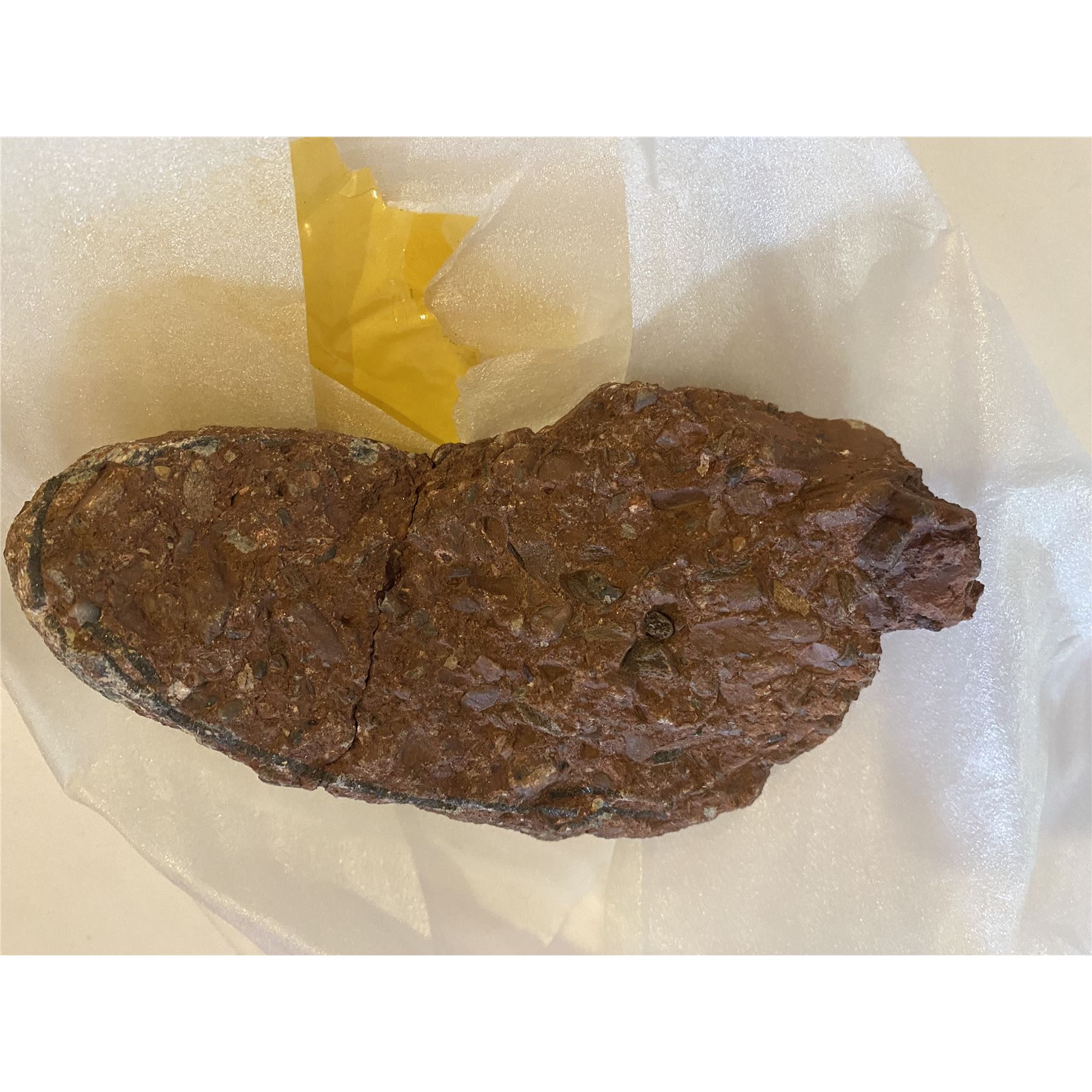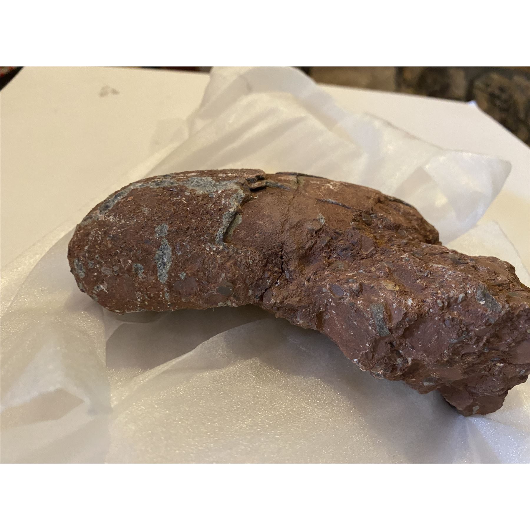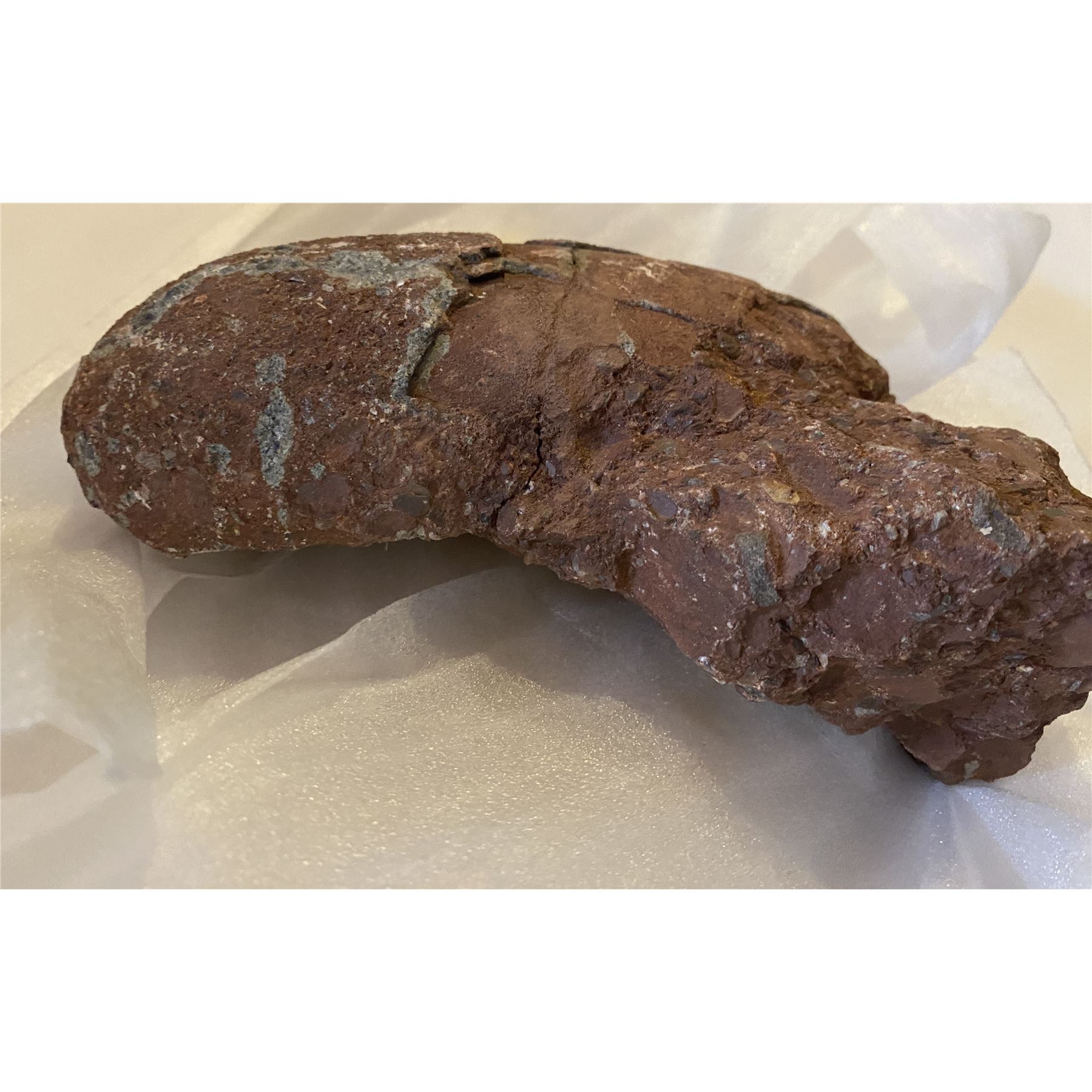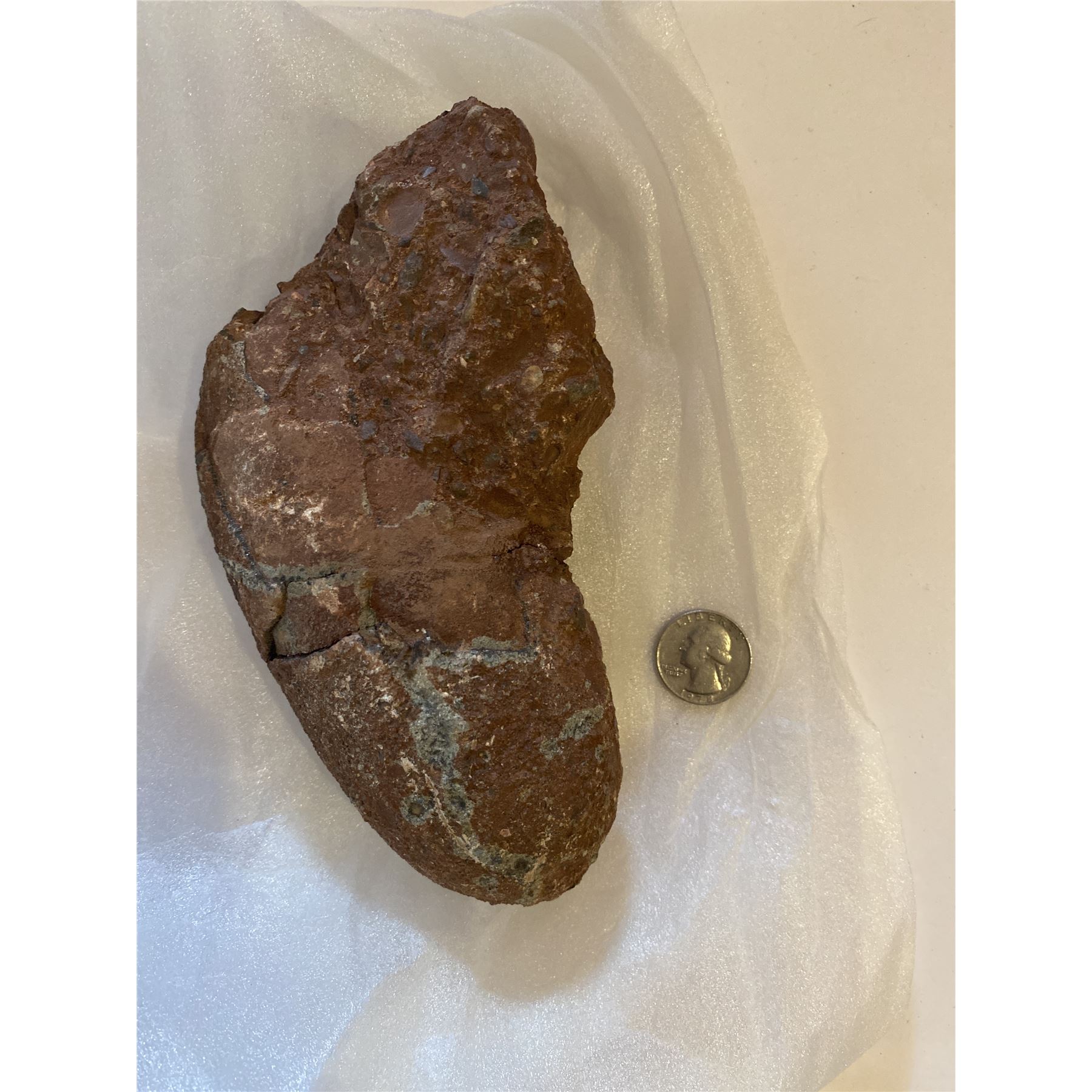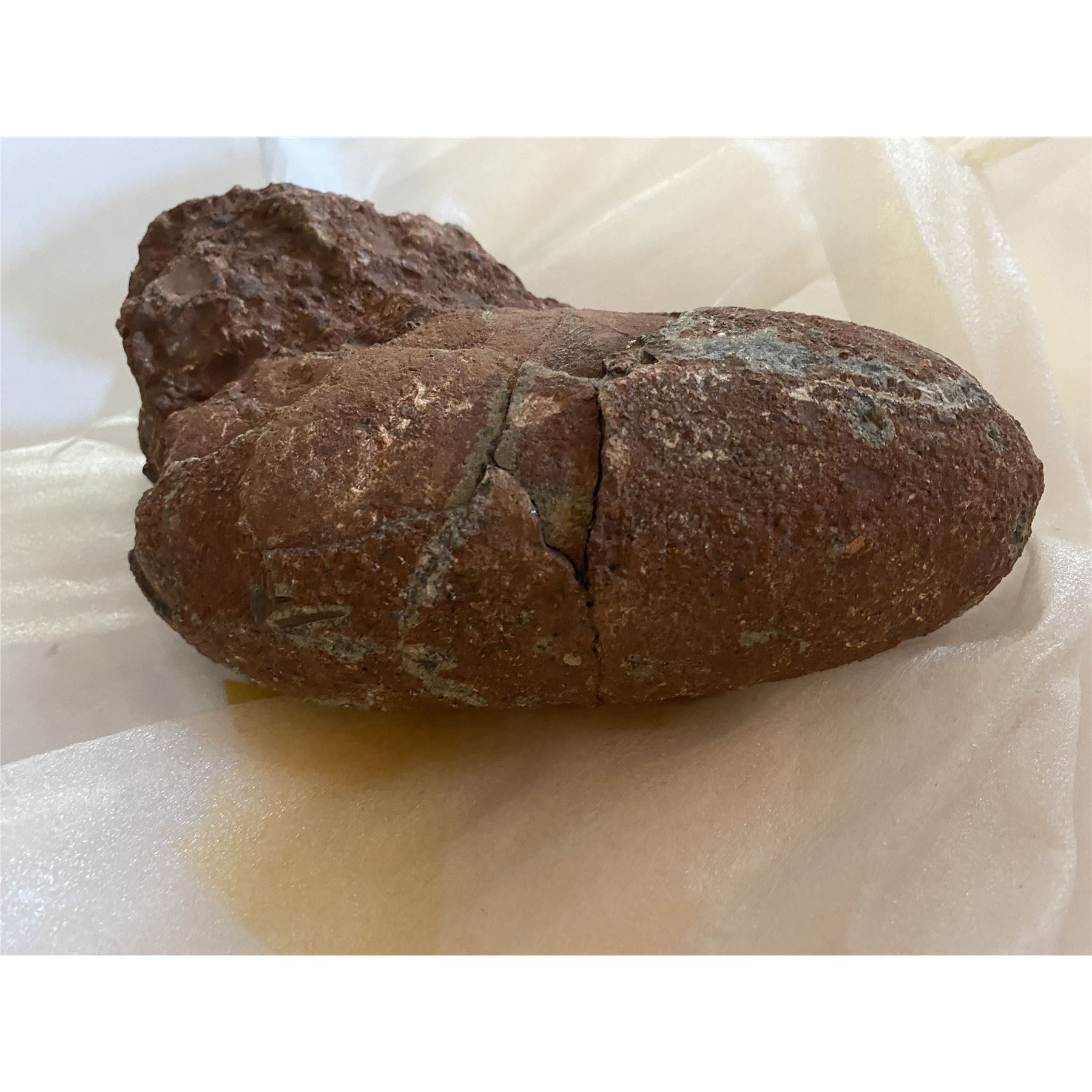 The fossilized velociraptor dinosaur egg is a remarkable prehistoric artifact that provides a glimpse into the ancient world of dinosaurs. This egg, belonging to the velociraptor species, has undergone a natural process of fossilization over millions of years. The fossil showcases the unique and intricate details of the eggshell, preserving the shape and texture that once cradled the developing velociraptor embryo. Approximate measurements at farthest points : 7.5x3.5x2.5