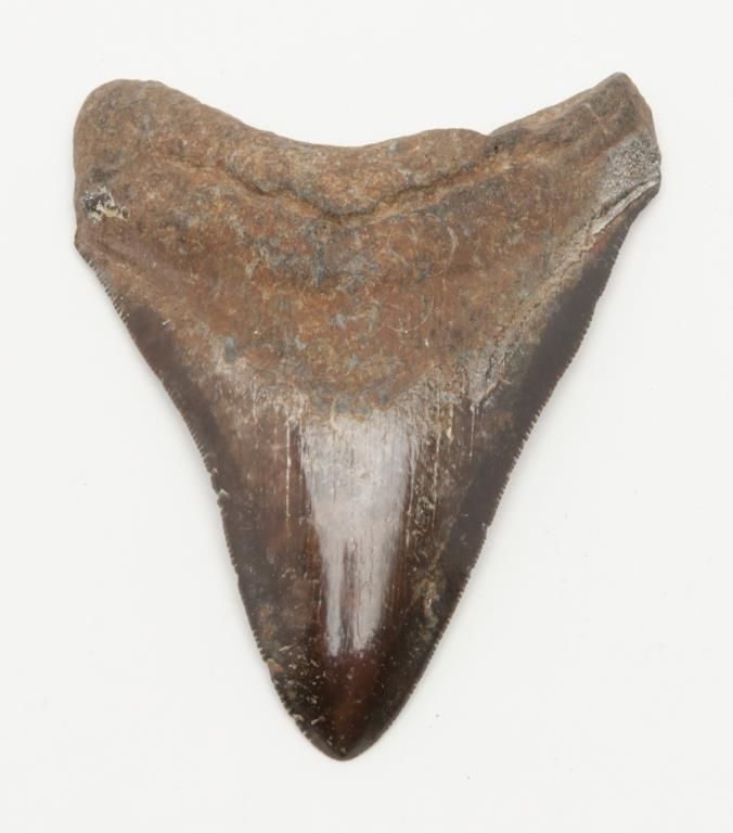 Fossilized shark tooth. 3 ½”x 3”. Est.: $100-$300