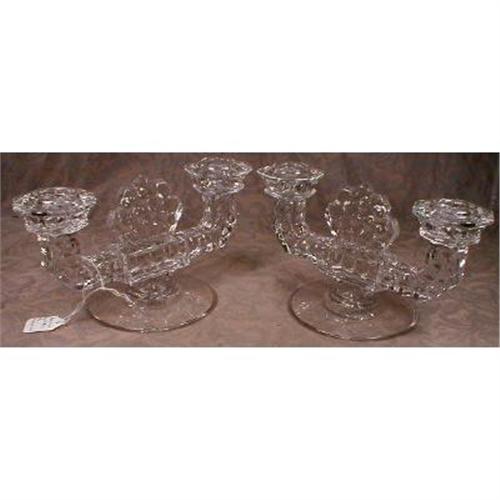 </font></strong>Great PAIR of American pattern glass candlesticks by Fostoria. Low two branch