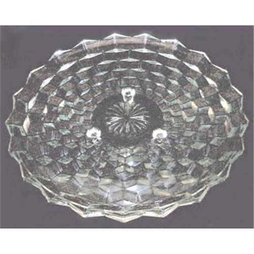 This beautiful Fostoria American 3 toed cake stand measures about 12 1/2" in diameter x 1 1/8" tall and is in excellent condition
