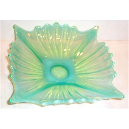 This lovely Green Fostoria Heirloom Bowl is in SUPERIOR condition with no chips, cracks, or dings and it measures 8" square. Heirloom was manufactured by Fostoria Glass Company.
