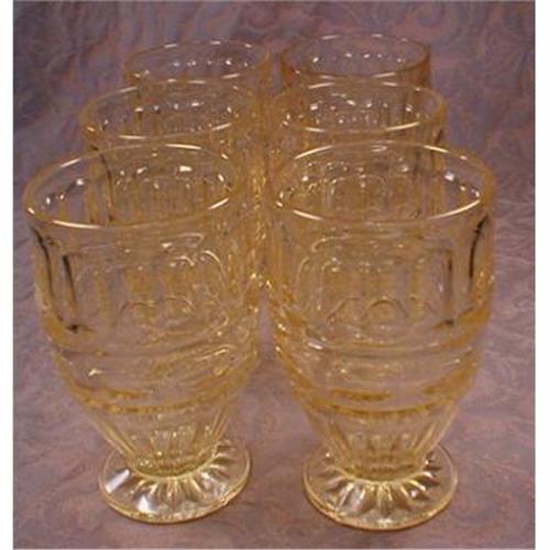 Six (6) Hermitage pattern footed iced tea glasses. Topaz