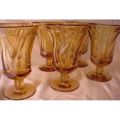 Set of six Fostoria Jamestown pattern iced tea glasses in amber. Like new condition with no nicks, chips or cracks.