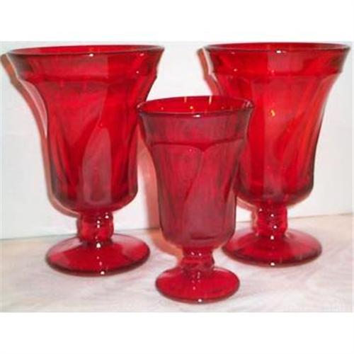We are offering two (2) fantastic Ruby Red Fostoria Jamestown Footed Water Goblets and one (1) Fostoria Footed Ruby Red Wine Goblet all for one money. Each of the goblets is in SUPERIOR condition with no chips, cracks, or dings and the water goblets measure 4" in diameter and stand 5.875"tall and the wine goblet is 2.75" in diameter and stands 4-5/16" tall. These are very hard to find in this color so don't let them pass you by.