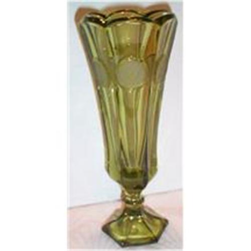 <tr><td>Title:Fostoria Olive Green Coin Glass Footed Vase</td></tr>