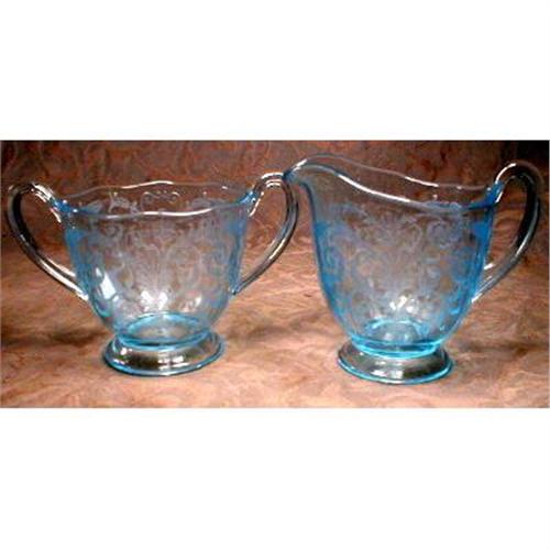 <tr><td>Title:Fostoria VERSAILLE Blue Cream & Sugar SET</td></tr>
