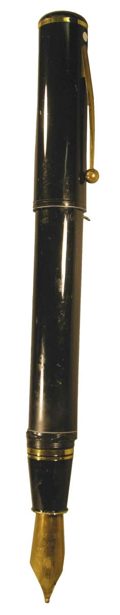 Fountain Pen Trade Symbol, inscribed Shaeffer's Fountain Pen 1920, eighteen carat. Some scratches, touch up and black tape holding tip, fair to good condition. 60 inches long.