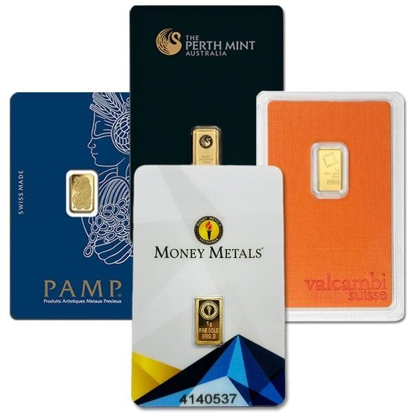 Four 1 Gram .9999 Fine 24 Karat Gold Bars, Total 4 Grams