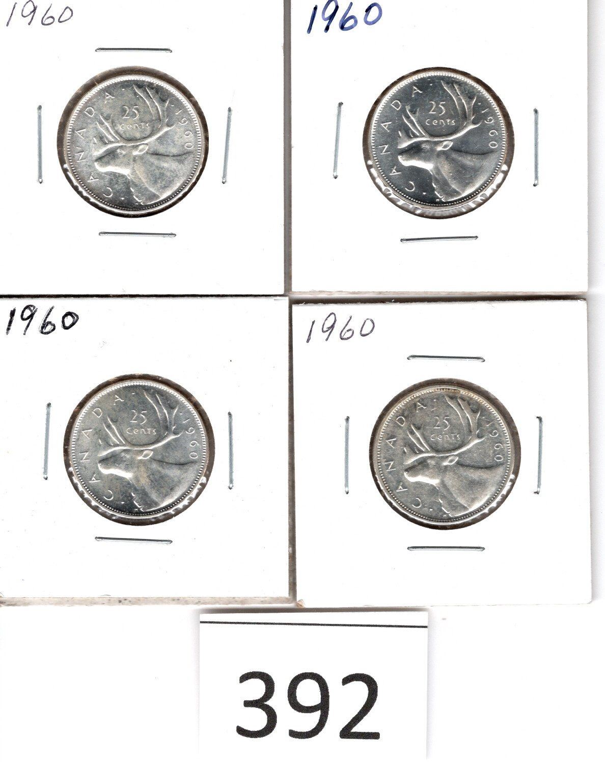 Four 1960 Quarters Individually Carded