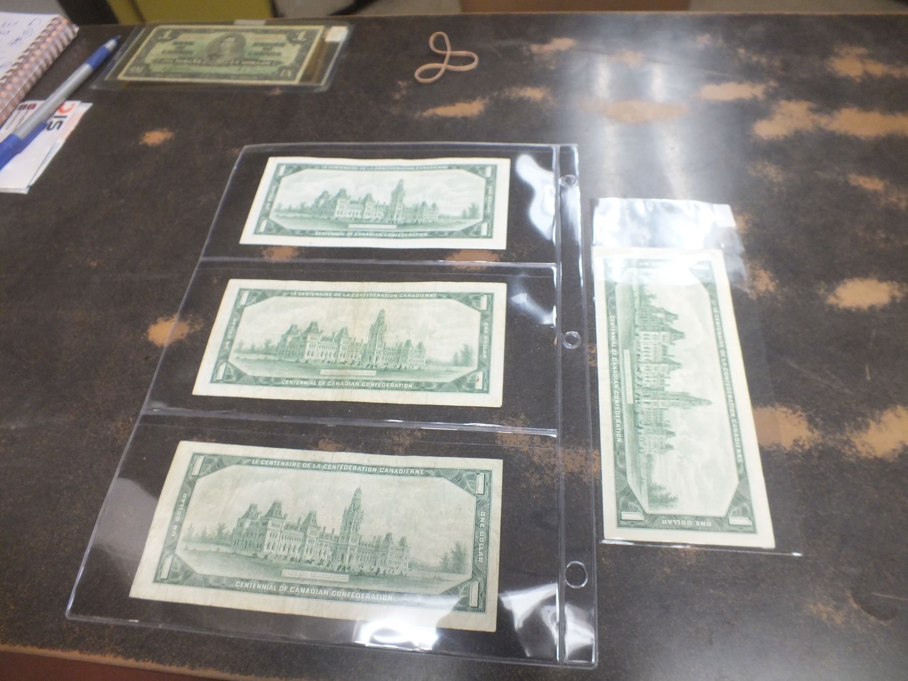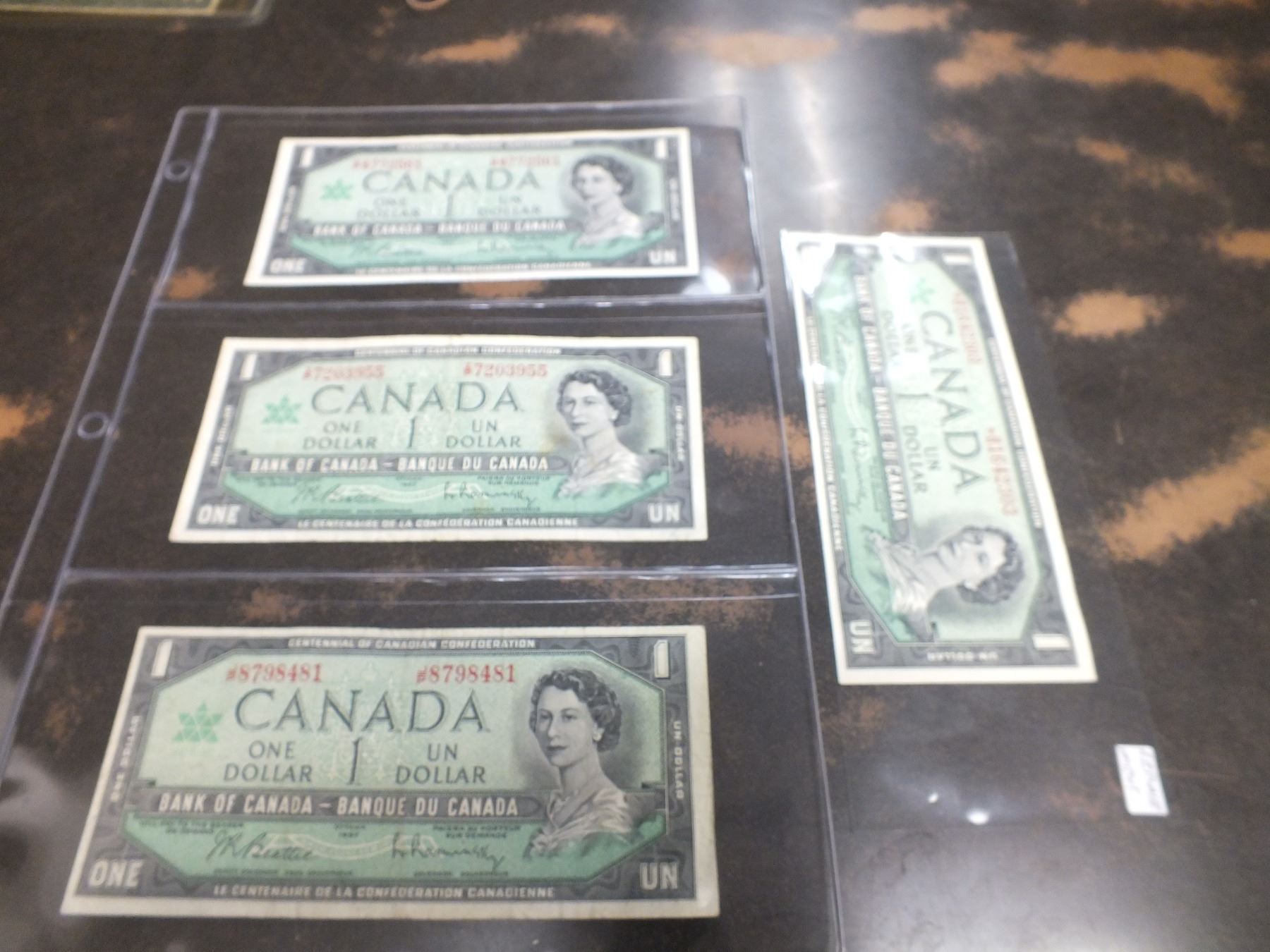 Four 1967 Canadian One Dollar Bills...sold as is / where is...used