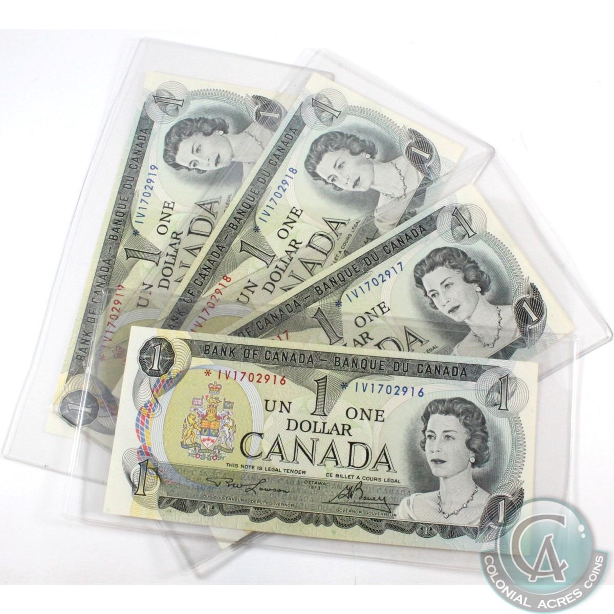 Four 1973 Replacement $1.00 notes with consecutive serial numbers all in UNC Condition.