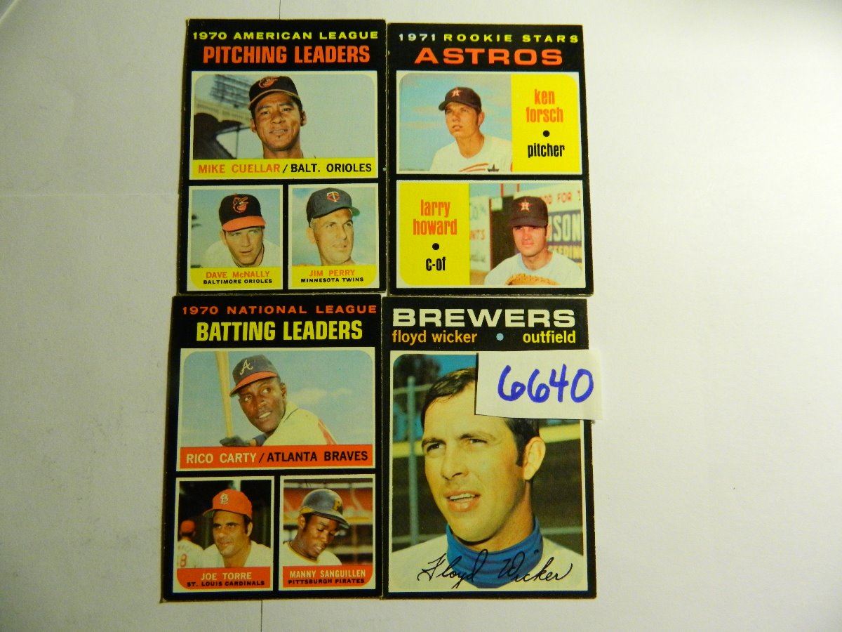 Sanguillen), Astros Rookie Stars (Ken Forsch and Larry Howard), A.L. Pitching Leaders (Cuellar, McNally & Perry). All 24 Game Winners! Cuellar and McNally both Orioles PLUS Jim Palmer Won 20 Games! All One Money