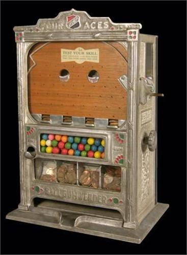 Four Aces Coin-Op Trade Stimulator Gum Vendor. Rock-O-La Mfg. Co. Chicago, IL. Good Original Condition Complete with Key.
