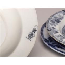 Four Antique Flo-Blue Pagoda Pattern Bowls and Plates Inc. Spode Landscape & Doulton Madras