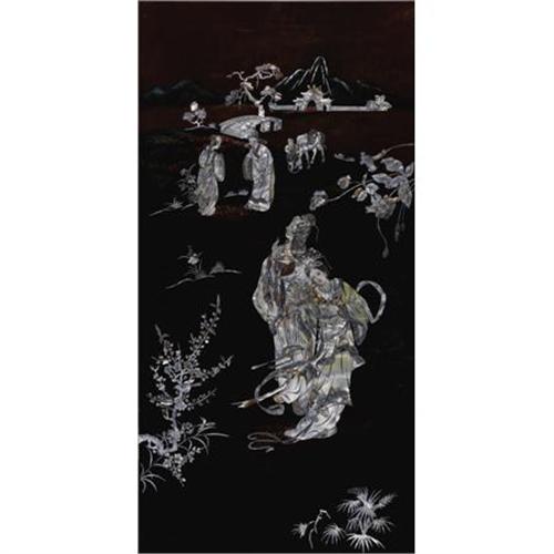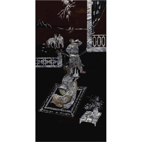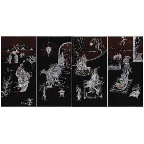 <B>Four Asian Lacquer Panels<BR></B></I>Unknown maker, possibly Vietnam<BR>Twentieth Century<BR>The four panels depicting figures in various pursuits in mother-of-pearl on black and red lacquer<BR>Unmarked<BR>39.2 inches high x 19.5 inches wide<BR><BR><b>Shipping:</b> Requires 3rd Party Shipping (<a target="_blank" href="http://www.heritageauctions.com/common/shipping.php">view shipping information</a>)