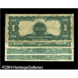 Four Assorted Large Size Type Notes Fr. 36 $1 1917 Lega <B>Four Assorted Large Size Type Notes.</B></I> Fr. 36 $1 1917 Legal Tender (2), both VF with stains and mounting remnants on the back; Fr. 237 $1 1923 Silver Certificate VG; Fr. 228 $1 1899 Silver Certificate VG, corner missing.<BR><I>Inspection is advised, as there will be no returns on this lot for any reason.</B></I><BR> 4 notes <BR><BR><B>Important notice:</B> Heritage usually auctions material at the rate of 200-250 lots per hour. On some occasions eBay Live bid software or the Internet may not be able to keep up with the pace of the auction. We recommend placing a realistic absentee bid now as insurance to avoid disappointment. Occasionally the auctioneer may eliminate or reject an eBay Live bid, and the auctioneer may also reopen a lot after the close of the eBay live bidding (usually because we missed an audience bid), and may reject your bid even if it shows you as the winning bidder. By bidding via eBay Live, you agree that Heritage may award the lot to another bidder at its sole discretion under the circumstances described above or any other reasonable circumstances. Since eBay bids are not shown to us until we open the lot on the floor, we treat those bids just like floor bids. In most cases the floor responds before the eBay bid is presented to us, due to Internet lag time, so for consistency we have made it a policy that floor bids are always considered first over tie eBay live bids. Also please note that all Heritage lots purchased through eBay Live carry a 20% Buyer's Premium. Please make sure you read the Terms and Conditions before you bid. This lot is being auctioned in conjunction with a live floor auction by Heritage Galleries & Auctioneers. All final auction and invoice information will be supplied by Heritage Galleries & Auctioneers, and all other information should be considered preliminary. Lot:17914