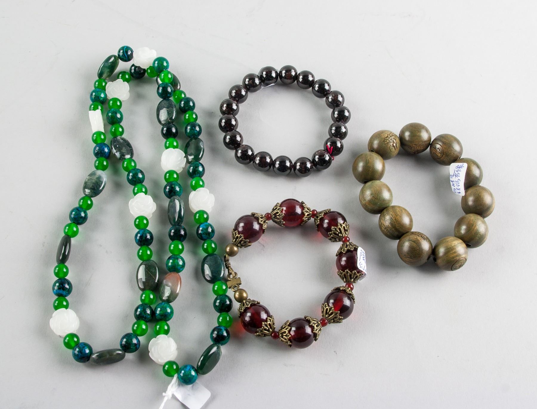 Four assorted necklace and bracelets. total weight: 234g, Diameter: 6-35 cm. PROVENANCE: Private estate (Scarborough, ON)
