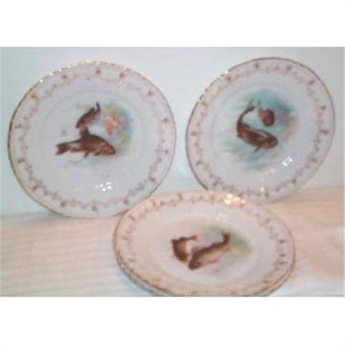 We are offering you four (4) fantastic Fish Decorated Plates all for one money. Each plate is decorated with a type of fish and then gilt with gold around the outside periphery of the plate. Each plate is in SUPERIOR condition with no chips, cracks, dings or hairlines and they each measure 8.50" in diameter. They are marked on the back wiht the familiar Austrian Logo.