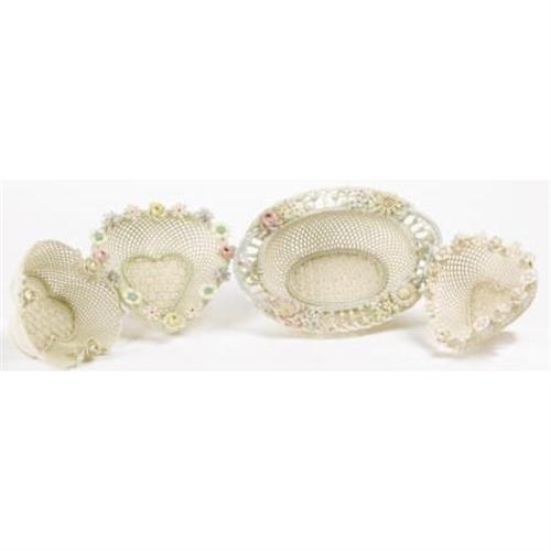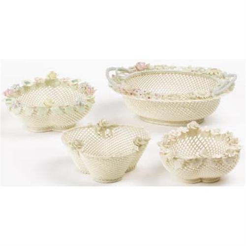 <B>Four Baskets<BR></B></I>Belleek Ware<BR>The four ivory-colored baskets with lattice bowls and applied flowers to the rim, in various sizes and shapes <BR><BR><b>Shipping:</b> Requires 3rd Party Shipping (<a target="_blank" href="http://www.heritageauctions.com/common/shipping.php">view shipping information</a>)