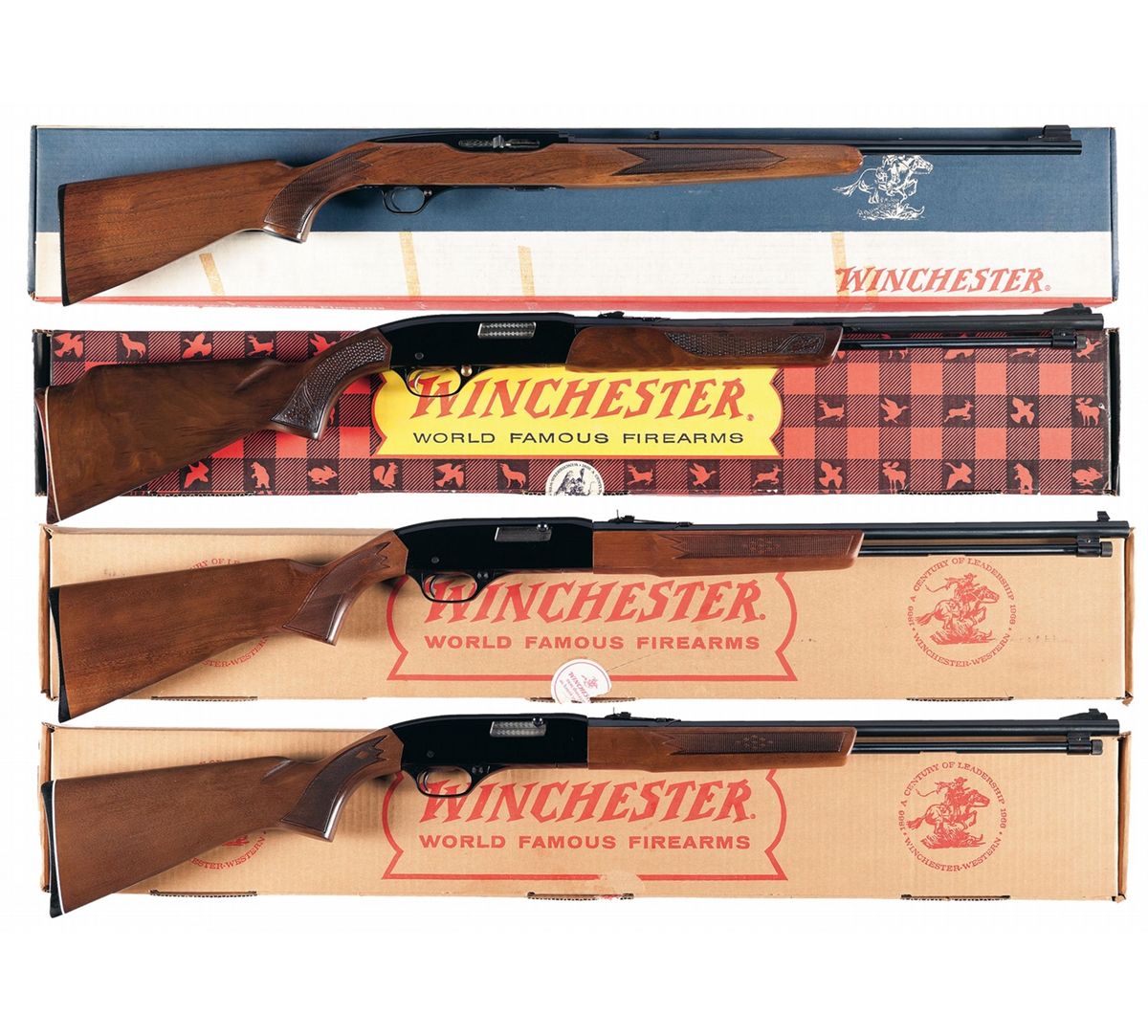- B) Manufactured between 1963 and 1973 with open rifle sights, full length tube magazine, and mounted on a checkered forearm and pistol grip stock. Includes the original box numbered to gun.