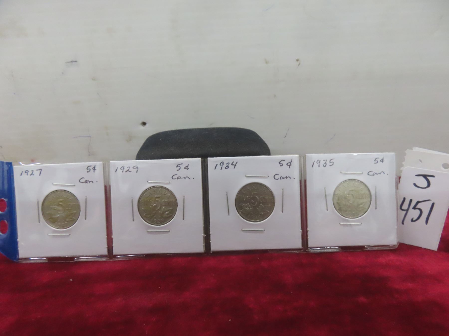 Four Canadian Nickels: 1927, 1929, 1934, 1935
