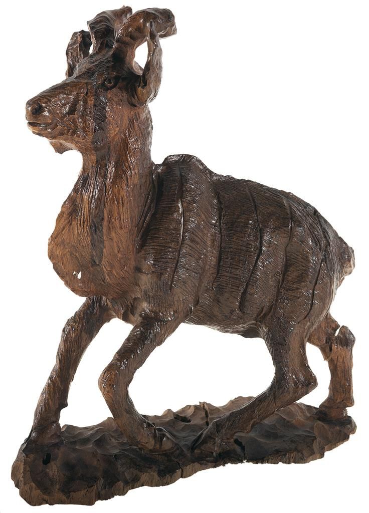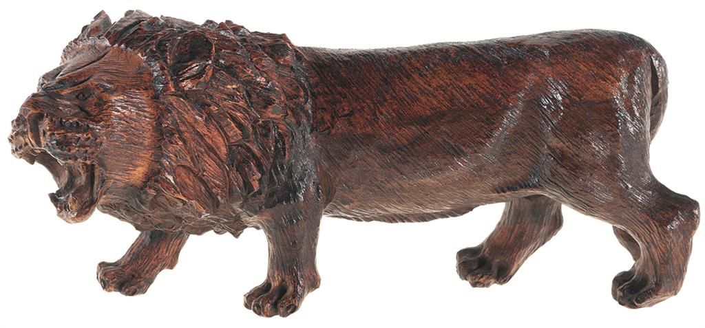 1) Unknown hardwood carved leopard aggressively poised on a fallen tree, measures 12" tall x 16" wide x 6" deep and weighs approximately 5 lbs. Very good. 2) Unknown hardwood carved walking trumpeting bull elephant, measures 9" tall x 12" wide x 6" deep and weighs approximately 3 lbs. Good with the hardwood tusks detached, one is broken (tusks included). 3) Unknown hardwood carved standing lion, measures 5" tall x 11" wide x 4 1/2" deep and weighs approximately 3 lbs. Very good. 4) Unknown hardwood carved standing kudu, measures 8 1/2" tall x 6 1/2" x 2 1/2" deep and weighs approximately 1lb. Good with the horns broken (horns included). All are unsigned.